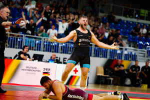 Heidelberg – Stimmungsvoll ging es am zweiten Wettkampftag der Deutschen Ringer-Meisterschaften zu, wo im Heidelberger SNP-Dome weitere Titel 2023 für die Freistilspezialisten, und Frauen vergeben wurden.