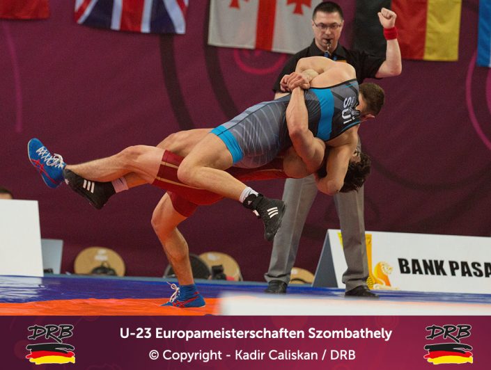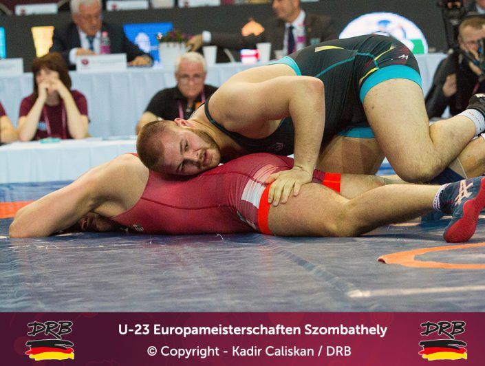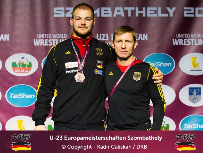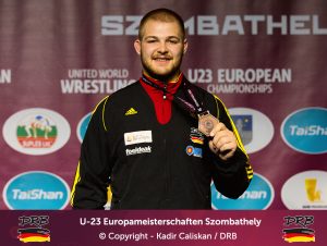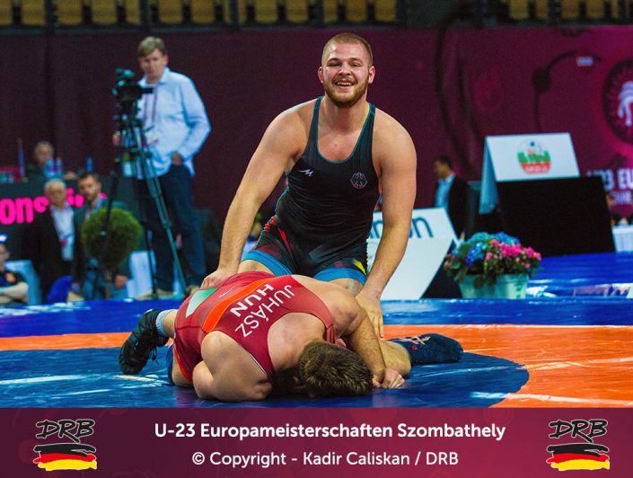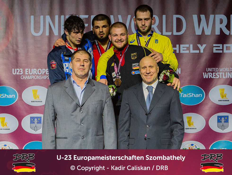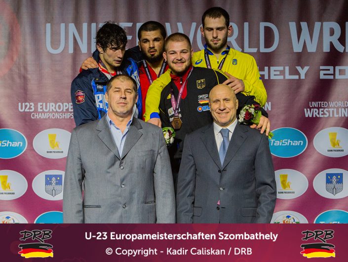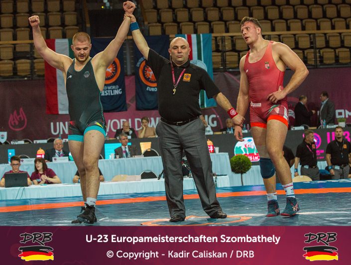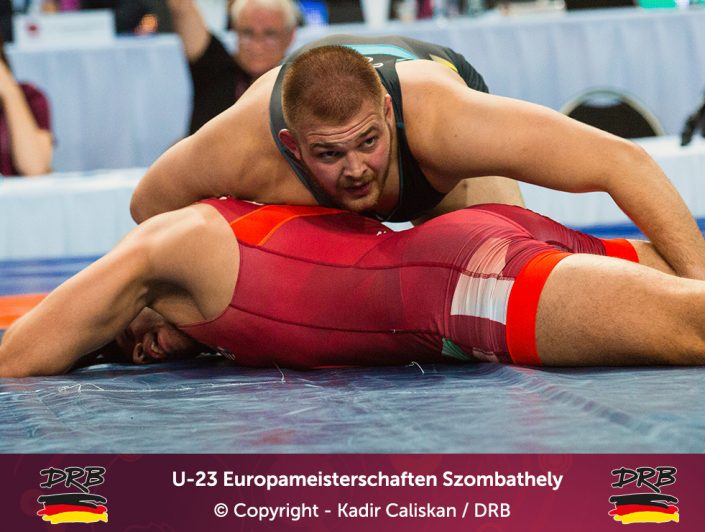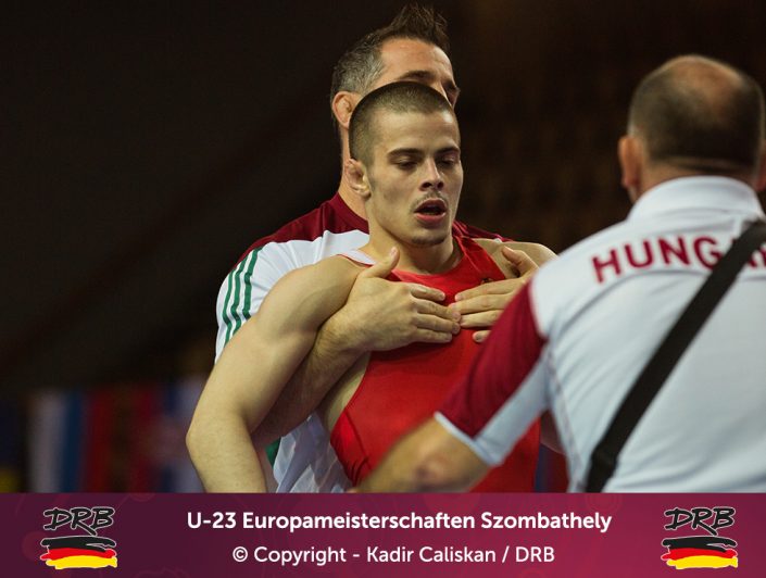 Den besten Start ins Turnier erwischte Cudinovic bis 97kg. In einem packenden ersten Kampf besiegte er Jordan Noblet aus Frankreich mit 16:8 und zog ins Viertelfinale ein. Dort kostete er seinen Trainern weniger Nerven, ließ dem Slovaken Gabriel Tysz keine Chance und setzte sich vorzeitig mit 10:0 durch. Im Halbfinale allerdings war gegen Junioren-Weltmeister Georgi Gogaev aus Russland kein Kraut gewachsen und Cudinovic trat somit am Abend im kleinen Finale um Platz 3+5 an. Die gut gefüllte Halle hoffte auf die erste Medaille, denn sein Gegner war mit Juhasz Balasz ein Lokalmatador. Doch Gennadij ließ sich von der Kulisse nicht beeindrucken und siegte souverän. Von Beginn an im Vorwärtsgang beherrschte er den Ungarn klar und ging mit einem frühen Takedown in Front, bis zur Pause konnte er diese Führung sogar bis auf 8:0 ausbauen und ließ sich fortan Bronze nicht mehr nehmen. Am Ende stand ein 11:0 Überlegenheitssieg auf der Anzeigetafel und das Deutsche Team freute sich über die erste Medaille!