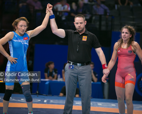 Paris – Am dritten Wettkampftag der Ringer-Weltmeisterschaften in Paris (FRA) ist mit Maria Selmaier (75 kg/KSC Motor Jena) auch die Letzte, der drei deutschen Starterinnen augeschieden. Die DRB-Ringerin unterlag in der Hoffnungsrunde der Japanerin Hiroe Suzuki (JPN) nur knapp mit 1:2 Punkten. Frauen-Bundestrainer Patrick Loes enttäuscht; „… da war mehr drin“. Schon im Achtelfinale ließ sich Maria Selmaier noch in der ersten Runde des Kampfes von der Yasemin Adar (TUR) überraschen und landete nach einem Wurf der amtierenden Europameisterin auf beiden Schultern. Da Yasemin Adar jedoch das Finale erreichte, konnte Maria Selmaier in der Hoffnungsrunde erneut ins Kampfgeschehen eingreifen, wo sie gegen Hiroe Suzuki (JPN), der Asienmeisterin von 2015 ausschied.