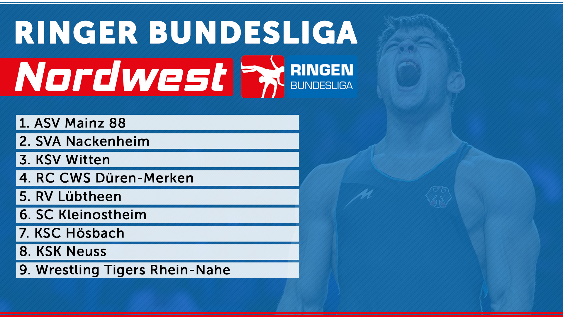 Die Einteilung für die kommende Bundesliga Saison steht. Erfreulicherweise wagen fünf Aufsteiger den Sprung ins kalte Wasser und stellen sich der Herausforderung 1. Bundesliga. Aus der Regionalliga Mitteldeutschland steigt der AV Markneukirchen auf, aus Hessen der KSC Hösbach, aus Nordrhein-Westlfalen KSK Neuss, aus der Rheinland-Pfalz-Liga die Wrestling Tigers Rhein Nahe und aus der Regionalliga Baden-Württemberg der SRC Viernheim.