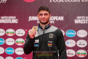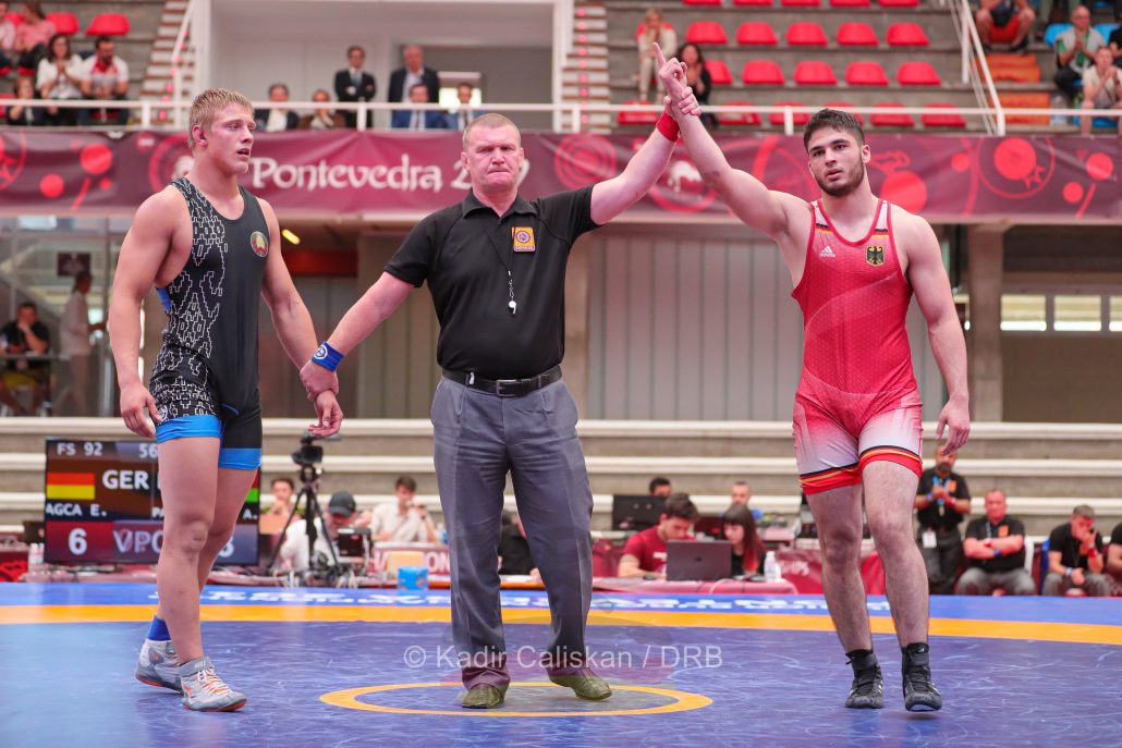 Am letzten Tag der Junioren Europameisterschaften im spanischen Pontevedra gewinnt Ertugrul Agca die Bronzemedaille. In der Gewichtsklasse bis 92kg besiegt er im kleinen Finale den Weißrussen Aliaksei PARKHOMENKA mit 6:3 Punkten und gewinnt wie schon im Vorjahr die Bronzemedaille.