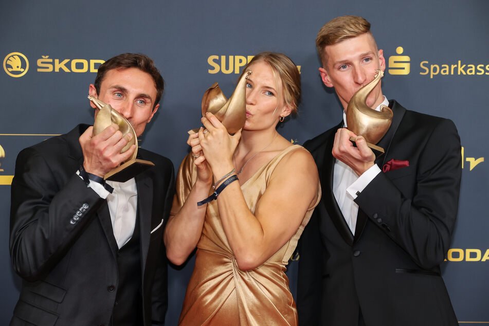 Als Olympia- und Paralympicssieger bekamen Triathlet Martin Schulz (31, l.) Ringerin Aline Rotter-Focken (30) und Schwimmer Florian Wellbrock (24) die Goldene Henne. © Jan Woitas/dpa-Zentralbild/dpa