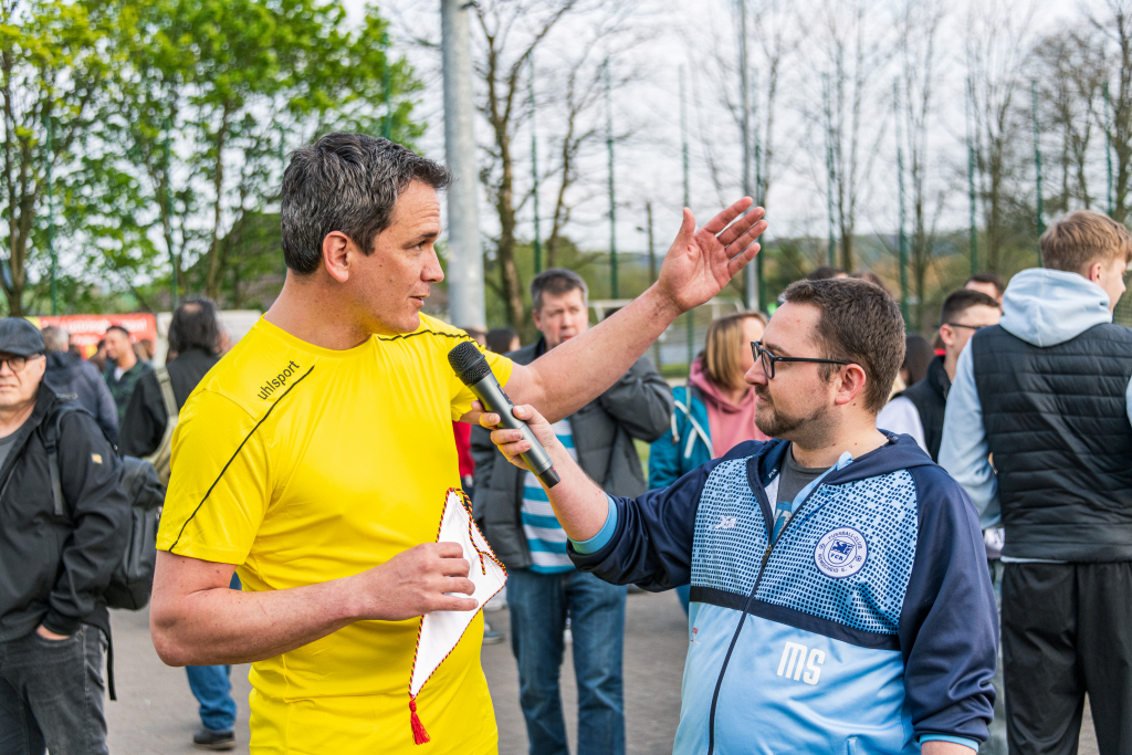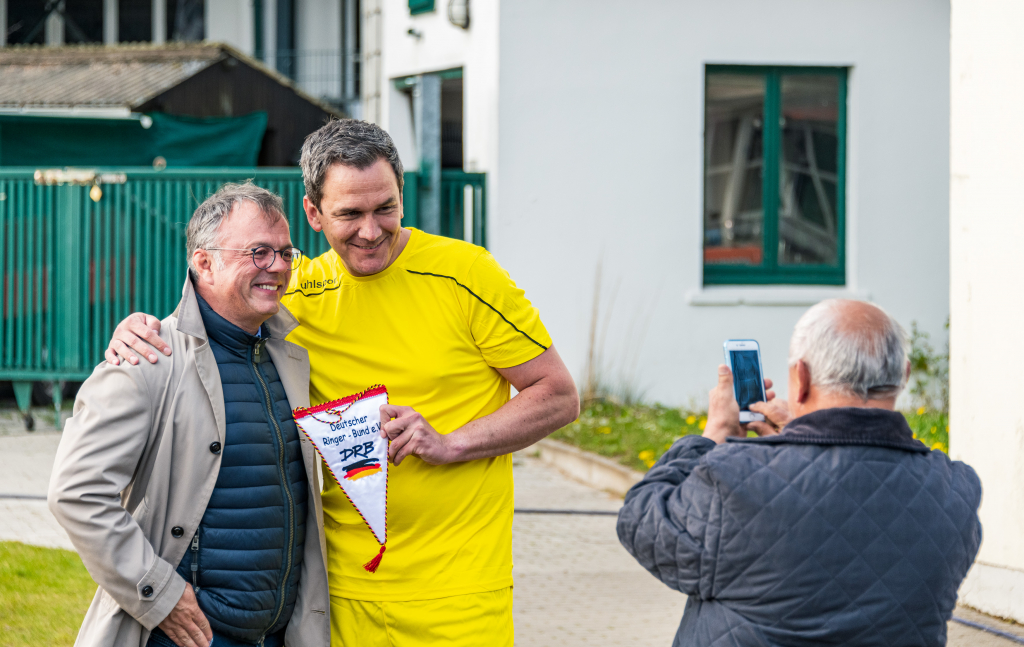 Am 22. April kamen viele tolle Menschen für den Guten Zweck auf den Jahnplatz nach Remscheid um für die Bürgerinnen und Bürger der Ukraine zu spielen. Dank des tollen Verzehrs an Speisen und Getränken sowie finanzieller Spenden kam an diesem Abend eine Spendensumme von 10000€ zusammen! Neben vielen Promis auf dem Platz hatte der Bandleader der Kölner Band „die Höhner“ seine Unterstützung neben dem Platz zugesagt und fleißig Selfis und Autogramme gegeben. Alle waren sich in der Kabine einig, dass dies keine einmalige Veranstaltung bleiben darf sondern wiederholt wirdWir Ringer können Fußball spielen, ob zum Aufwärmen oder für den Guten Zweck