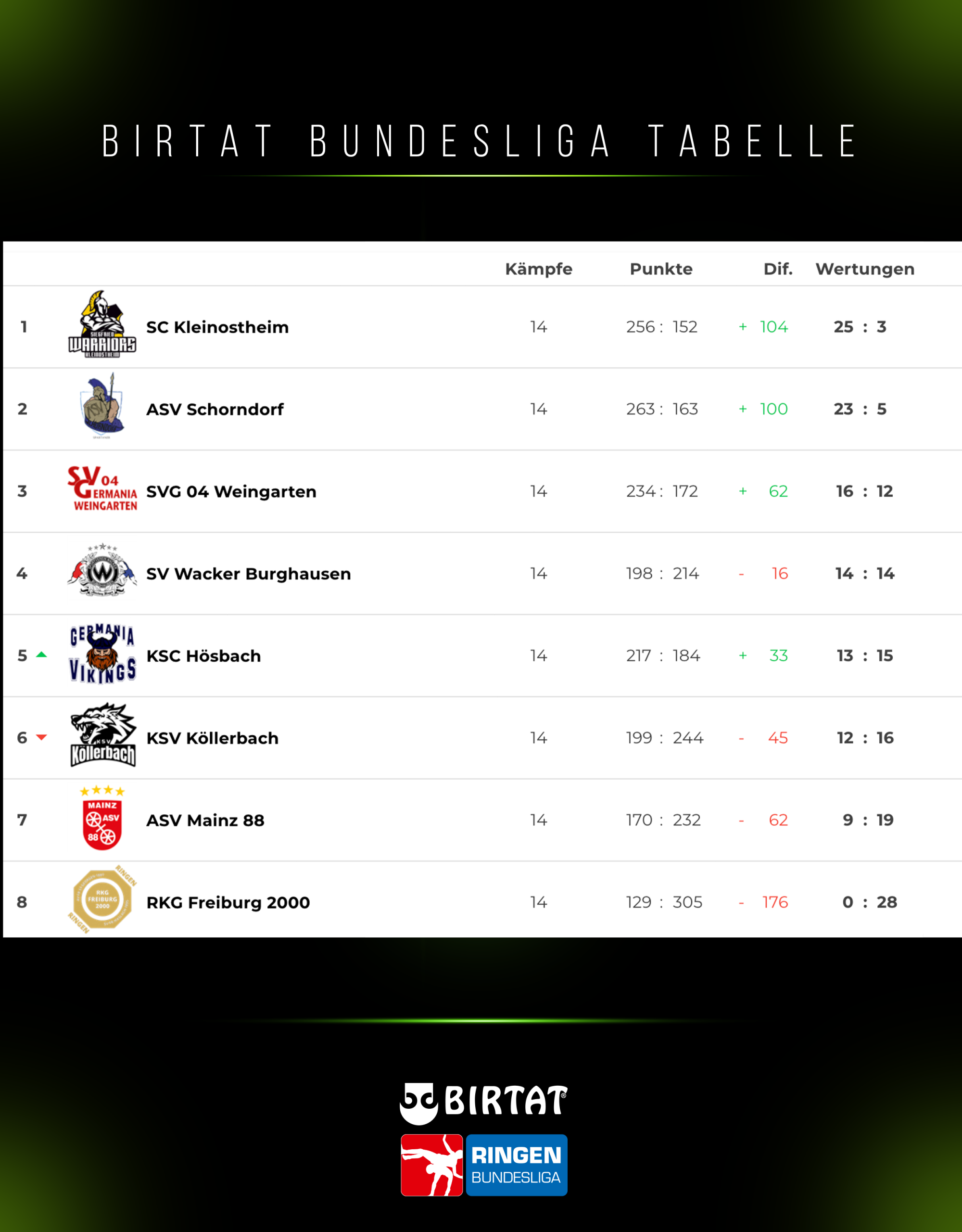 Die Hauptrunde der BIRTAT Ringer-Bundesliga ist abgeschlossen, und die Playoff-Teilnehmer für die Saison 2025/26 stehen fest.