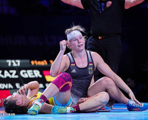 Gleich doppelt Grund zum jubeln gab es am Donnerstag für die deutschen Frauen! Während Sandra Paruszewski (59kg) gut in das Turnier startete und die Türkin Yanik schlug, traf Luisa Niemesch die Auslosung mit der Japanerin Kawai knüppelhart und die Weingartenerin schied früh aus. Auch Paruszewski scheiterte eine Runde später an der Mongolin Baatarjav und so ruhten die Hoffnungen früh auf Anna Schell (68kg). Und Schell bestätigte ihre tolle Form in diesem Jahr direkt zum Auftakt, als sie die Ex-Europameisterin Mamashuk (BLR) mit 8-6 in die Schranken weißen konnte. Ähnlich spannend gestaltete sich Annas Achtelfinale gegen die Aserbaidschanerin Netreba, doch auch hier hatte die Deutsche das bessere Ende für sich und legte Netreba in den letzten Sekunden sogar noch auf die Schultern.