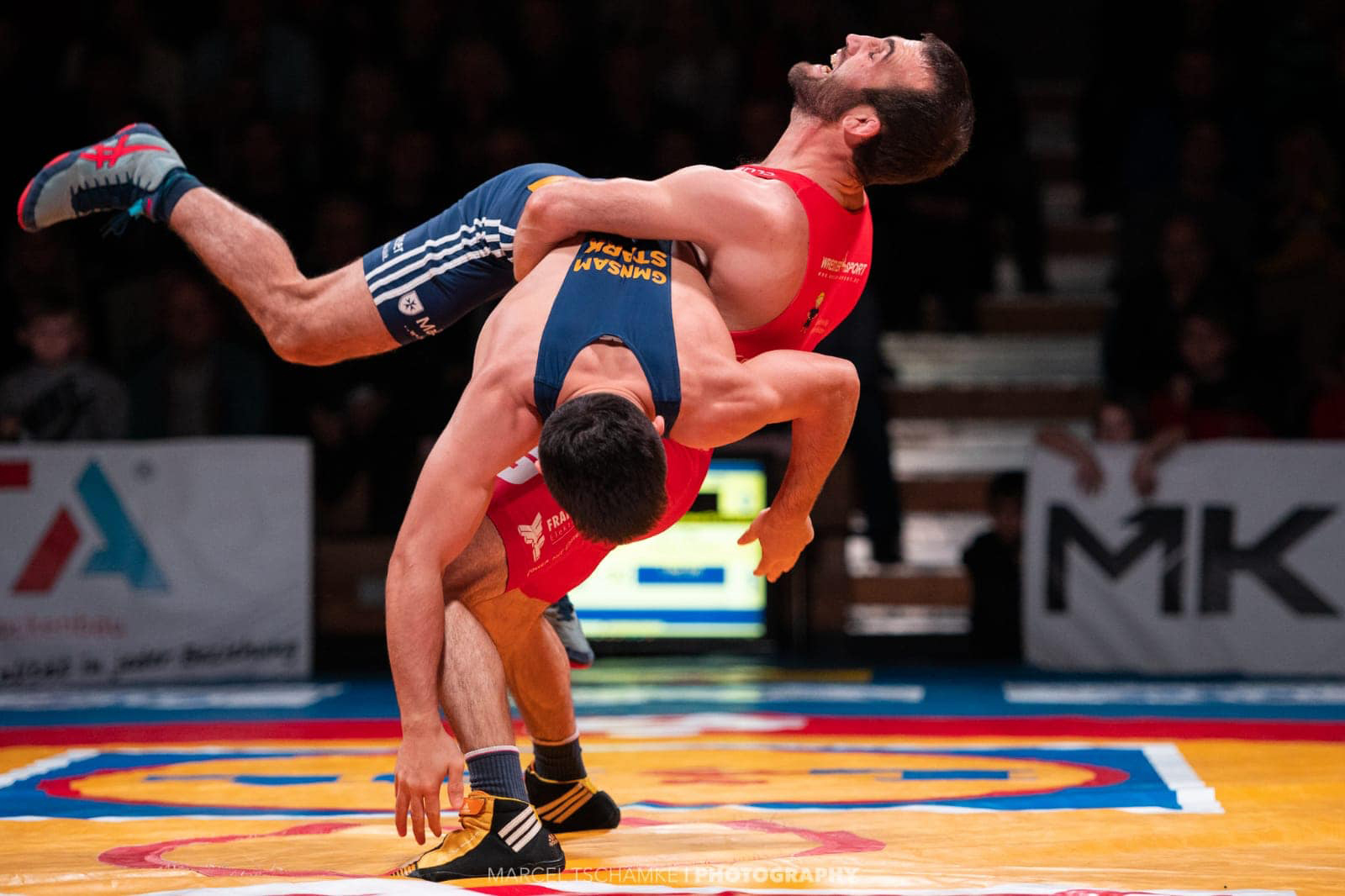 Mit Spannung erwartet wurde das Viertelfinale zwischen Vize-Meister Red Devils Heilbronn und dem ASV Mainz, den hier galt Heilbronn zwar als leichter Favorit, dennoch war Mainz ein Weiterkommen durchaus zuzutrauen. Denn vor allem in den Playoffs wusste das Mainzer Team in den vergangenen Jahren immer zu überzeugen. Daraus wurde diesmal allerdings nichts, der Kampf endete mit einem richtigen Statement der Red Devils, denn sie fegten die Mainzer in eigener Halle mit 22:8 regelrecht von der Matte. Vor allem im Aufstellungspoker im Vorfeld des Kampfes bewiesen Heilbronner Trainer ein glückliches Händchen und erwischten die Mainzer hier eiskalt. Bereits nach der Waage war klar, dass es für den ASV Mainz nur um Schadensbegrenzung gehen kann, was jedoch nicht so wirklich gelingen wollte. Zur Pause lag Heilbronn bereits nahezu uneinholbar mit 18:0 in Front, war vor allem an den überraschenden Einsätzen von Hammet Rüstem (61kg) und Taimuraz Friev (98kg) lag. Nach der Unterbrechung brachte Mainz zwar direkt einige Zähler auf die Punktetafel, doch gerade bei den Einzelsiegen der beiden Türken Akbudak und Demircin wäre mehr möglich gewesen, als das errungene 2:0. Die Heilbronner Ecke blickte dem Kampfende entspannt entgegen, denn im letzten Aufeinandertreffen hatte man mit dreifach Weltmeister Frank Stäbler noch ein wahres Ass im Ärmel, welcher dann in gewohnt souveräner Manier den hohen Heimsieg sicherstellte.
