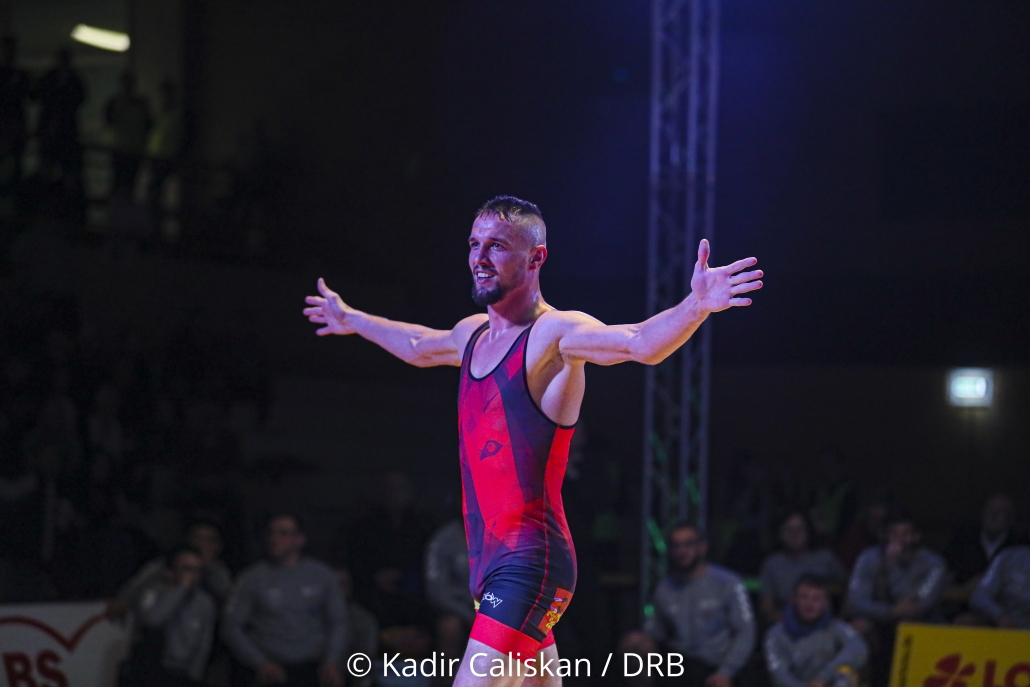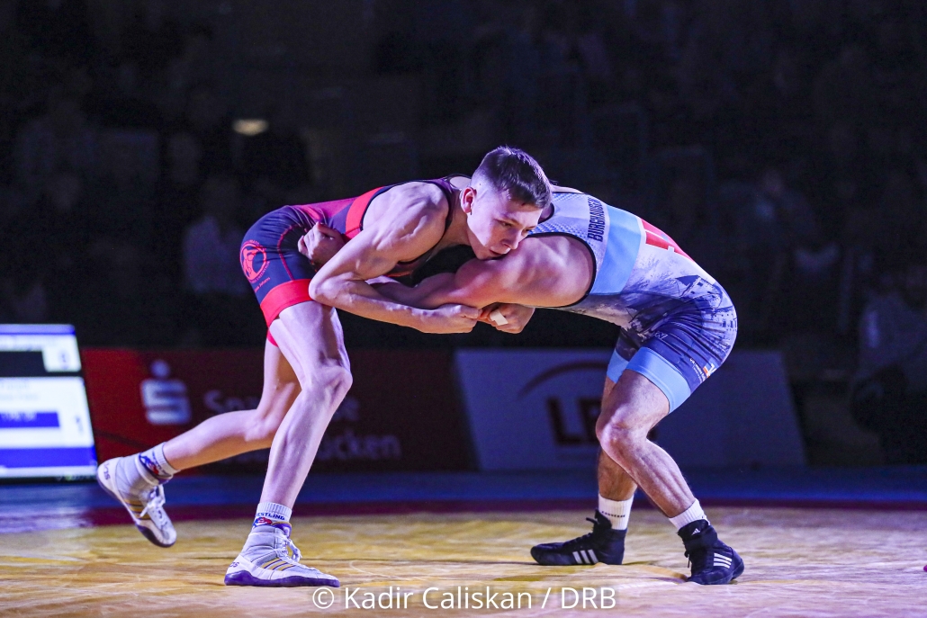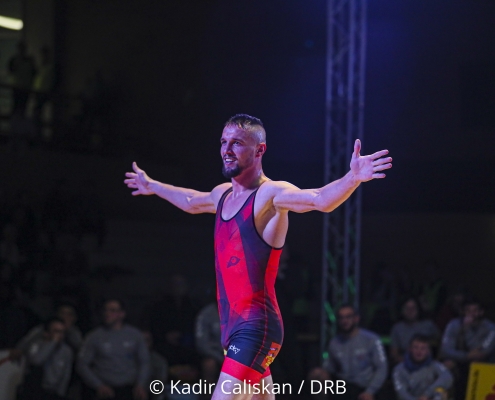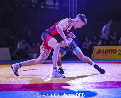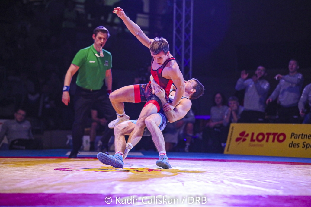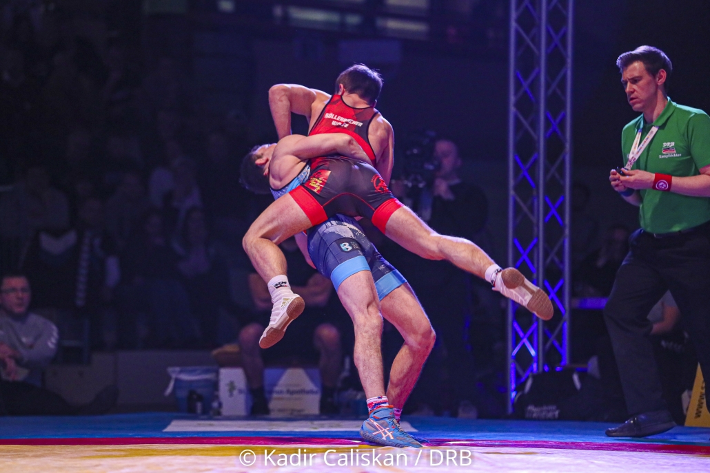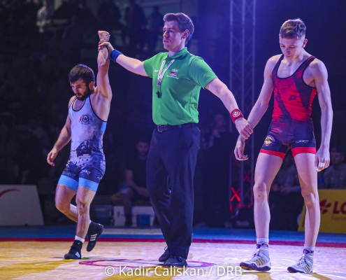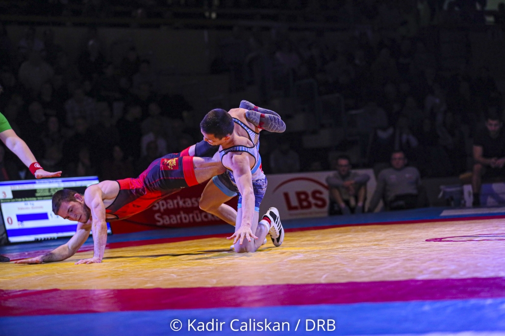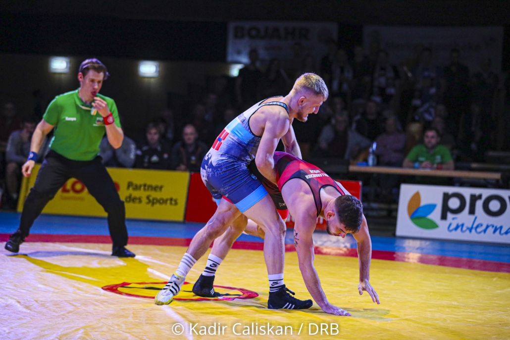 In der Völklinger Hermann-Neuberger-Halle ließ sich KSV-Teamleiter Thomas Geid indessen von diesem Ballyhoo nicht aus der Ruhe bringen. Er schenkte einer Köllerbacher Mannschaft das Vertrauen, die an diesem Samstagabend dem SV Wacker Burghausen auf Augenhöhe begegnete. Die Zuschauer erlebten ein Super-Spektakel und brauchten ihr Kommen wahrlich nicht zu bereuen. Am Schluss stand es ganz knapp 15:13 für den Titelverteidiger, doch Köllerbach hätte sich aufgrund seiner starken Mannschaftsleistung durchaus ein Remis verdient gehabt. Sogar ein knapper Sieg lag für die Saarländer im Bereich des Möglichen. Die beiden Finalisten stellten an diesem denkwürdigen Ringer-Abend jeweils fünf Sieger. Doch die Top-Stimmung in der Halle schwappte erst endgültig nach der Halbzeit über, denn nach fünf Kämpfen stand auf der Anzeigentafel noch ein 11:3 für das Team aus Oberbayern. So wurde in der leichtesten Gewichtsklasse bis 57 kg der Köllerbacher Youngster Giovanni Comparetto von dem früheren dreifachen türkischen Juniorenweltmeister Ahmet Peker nach knapp 90 Sekunden geschultert. Im Greco-Schwergewicht dagegen setzte sich der Este Heiki Nabi, der in den Diensten des KSV Köllerbach steht, gegen den zweifachen deutschen Meister Ramsin Azizsir sicher mit 4:0 nach Punkten durch. In der Gewichtsklasse bis 61 kg bot der Köllerbacher Greco-Spezialist Steven Ecker von der Kampfkraft her alles Menschenmögliche auf. Doch gegen Andreas Maier, den deutschen Vizemeister des Jahres 2018, konnte er letztlich eine 0:9-Punktniederlage nicht vermeiden.