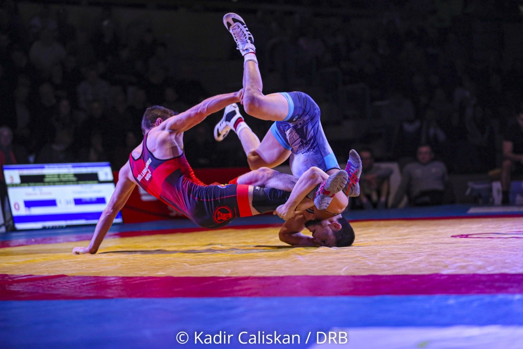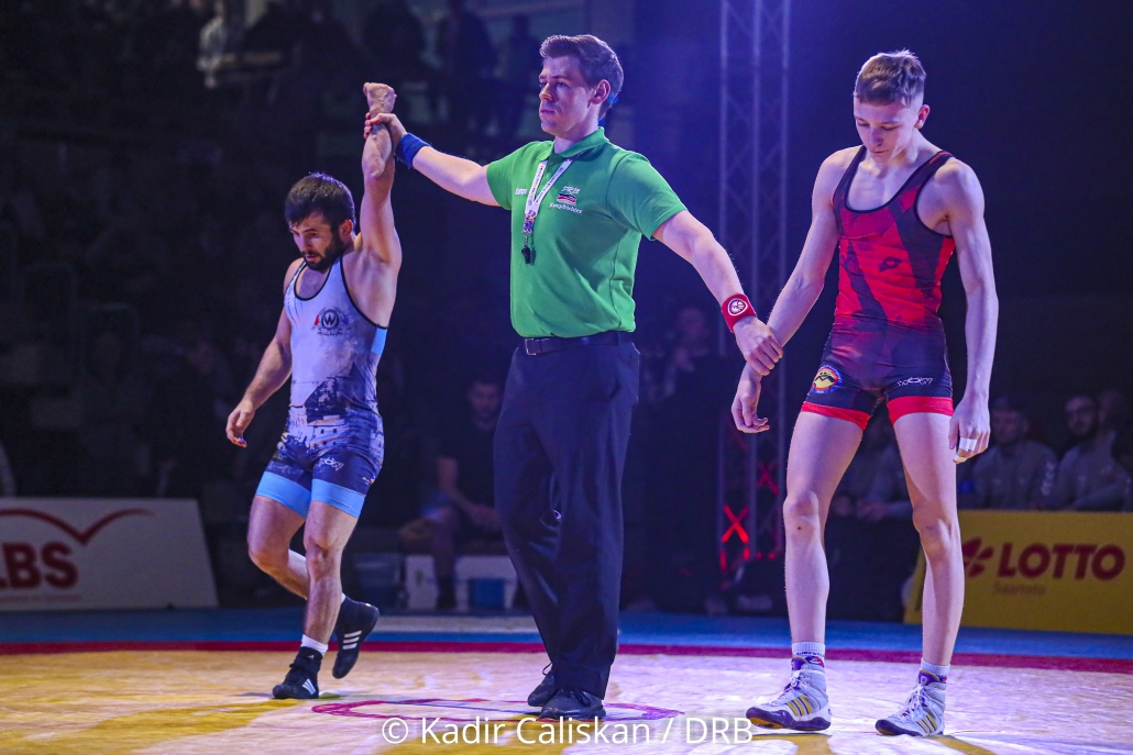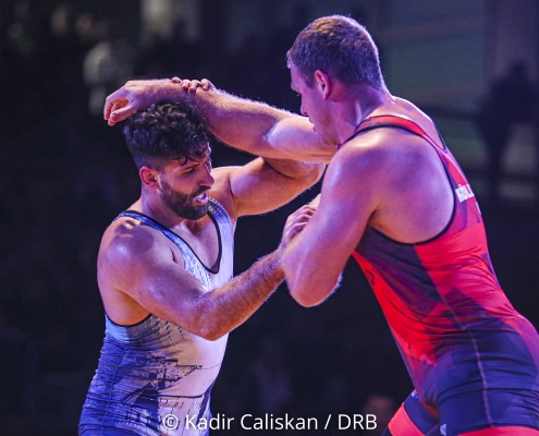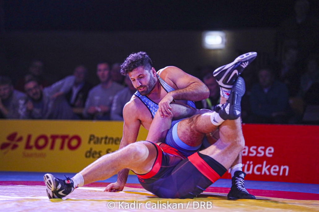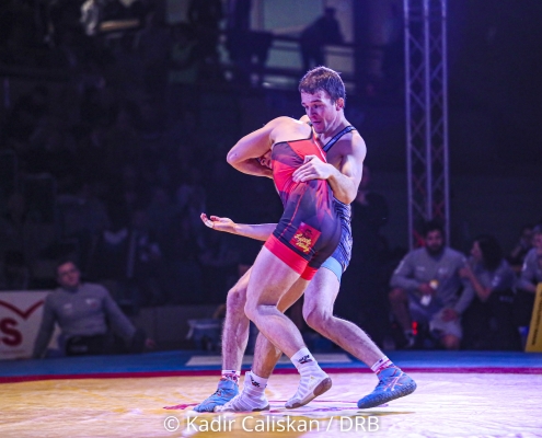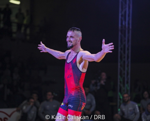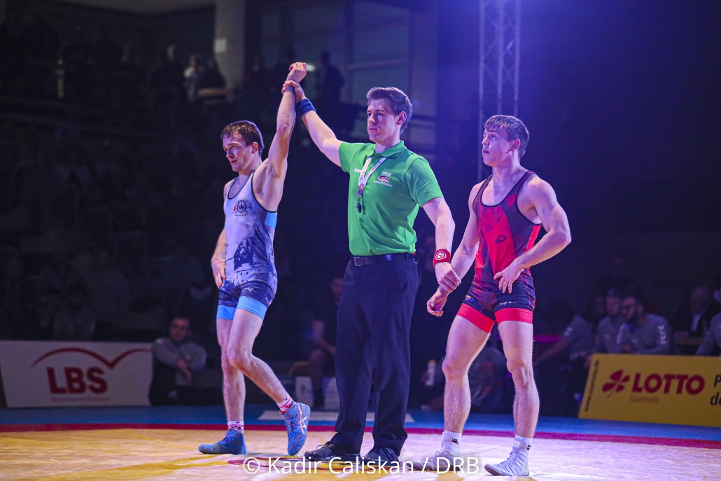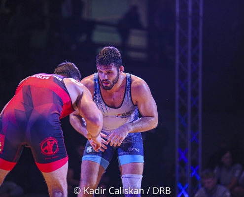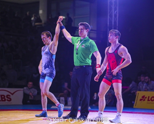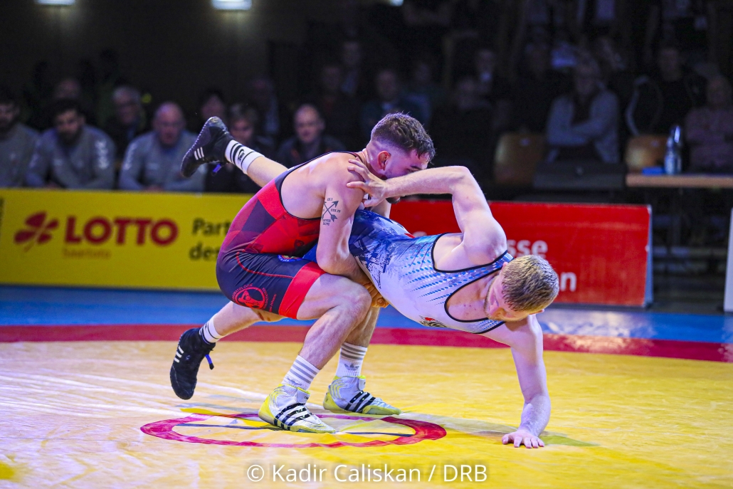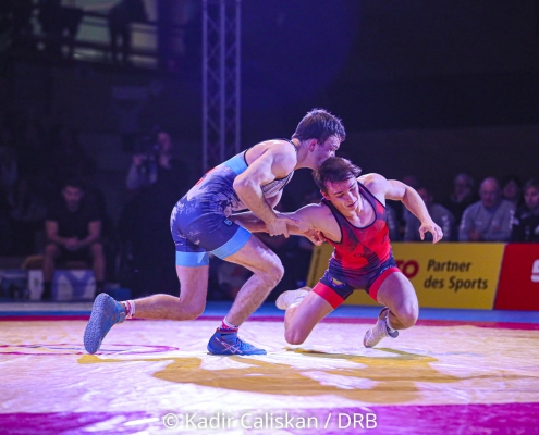 In der Völklinger Hermann-Neuberger-Halle ließ sich KSV-Teamleiter Thomas Geid indessen von diesem Ballyhoo nicht aus der Ruhe bringen. Er schenkte einer Köllerbacher Mannschaft das Vertrauen, die an diesem Samstagabend dem SV Wacker Burghausen auf Augenhöhe begegnete. Die Zuschauer erlebten ein Super-Spektakel und brauchten ihr Kommen wahrlich nicht zu bereuen. Am Schluss stand es ganz knapp 15:13 für den Titelverteidiger, doch Köllerbach hätte sich aufgrund seiner starken Mannschaftsleistung durchaus ein Remis verdient gehabt. Sogar ein knapper Sieg lag für die Saarländer im Bereich des Möglichen. Die beiden Finalisten stellten an diesem denkwürdigen Ringer-Abend jeweils fünf Sieger. Doch die Top-Stimmung in der Halle schwappte erst endgültig nach der Halbzeit über, denn nach fünf Kämpfen stand auf der Anzeigentafel noch ein 11:3 für das Team aus Oberbayern. So wurde in der leichtesten Gewichtsklasse bis 57 kg der Köllerbacher Youngster Giovanni Comparetto von dem früheren dreifachen türkischen Juniorenweltmeister Ahmet Peker nach knapp 90 Sekunden geschultert. Im Greco-Schwergewicht dagegen setzte sich der Este Heiki Nabi, der in den Diensten des KSV Köllerbach steht, gegen den zweifachen deutschen Meister Ramsin Azizsir sicher mit 4:0 nach Punkten durch. In der Gewichtsklasse bis 61 kg bot der Köllerbacher Greco-Spezialist Steven Ecker von der Kampfkraft her alles Menschenmögliche auf. Doch gegen Andreas Maier, den deutschen Vizemeister des Jahres 2018, konnte er letztlich eine 0:9-Punktniederlage nicht vermeiden.