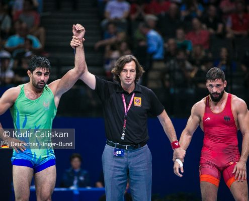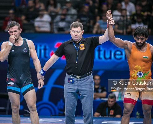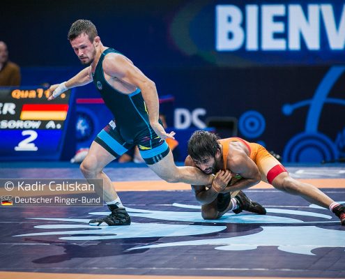 Nach dem überragenden Start der griechisch Athleten und dem i-Tüpfelchen mit WM-Silber durch Aline Focken bei den Frauen, blieben die Deutschen Ringer im abschließenden Freistil ohne Medaille. Am sechsten und letzten Wettkampftag starteten Alexander Semisorov (65kg), Lennard Wickel (70kg), Kubilay Cakici (74kg) und Gabriel Stark (97kg). Semisorov unterlag in der Qualifikation dem Inder Bajrang nach Punkten, da dieser bereits im 1/8 Finale scheiterte, war Alexanders Turnier nach nur einem Kampf beendet. Nicht viel besser erging es seinen Teamkollegen Lennard Wickel und Gabriel Stark. Wickel musste sich dem russischen Meister Kadimagomedov mit 3:13 beugen, Stark zog gegen den Südkoreaner Jae-Gang Kim den Kürzeren. Den einzigen deutschen Sieg am Vormittag verbuchte Kubilay Cakici, er bezwang in seinem 1/16 Finale Balfour aus Kanada. Doch auch für ihn war in der folgenden Runde Schluss. Im Achtelfinale hatte er beim 0:11 keine Chance gegen den 5. der Olympischen Spiele Abdurakhmonov (UZB) Ergebnisse 65kg Alexander Semisorow Quali. gegen BAJRANG BAJRANG (IND) 2:6 PN 70kg Lennard Wickel Quali. gegen RMAGOMEDKHABIB KADIMAGOMEDOV (RUS) 3:13 PN 74kg Kubilay Cakici Qualifikation gegen Balfour, Jevon (CAN) 4:3 PS 1/8 Finale gegen Bekzod Abdurakhmanov (UZB) 0:11 PN 97kg Gabriel Stark Qualifikation gegen Jaegang KIM (KOR) 1:4 PN