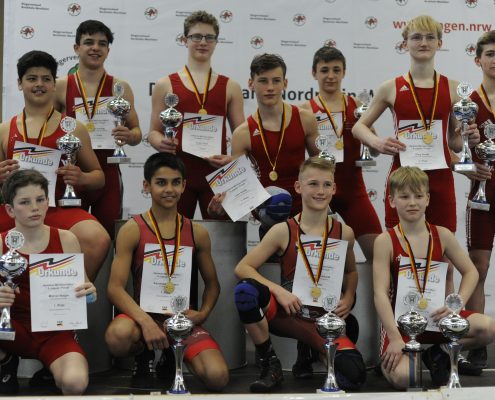 „15 Landesverbände hatten gemeldet, 14 waren letztlich am Start. Das ist sehr zufriedenstellend. Vor allem waren auch solche dabei, die jahrelang nicht mehr dabei waren“, so Klaus Blank. Insgesamt nahmen 128 Nachwuchsringer im Alter von zwölf bis 14 Jahren an den Titelkämpfen teil – und weckten Hoffnungen für die Zukunft.