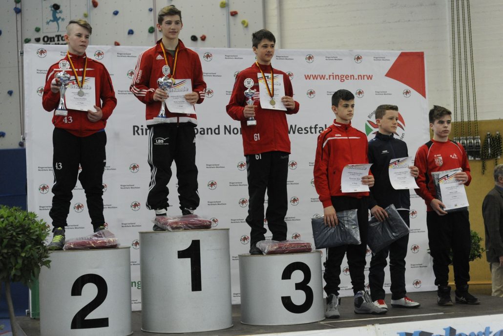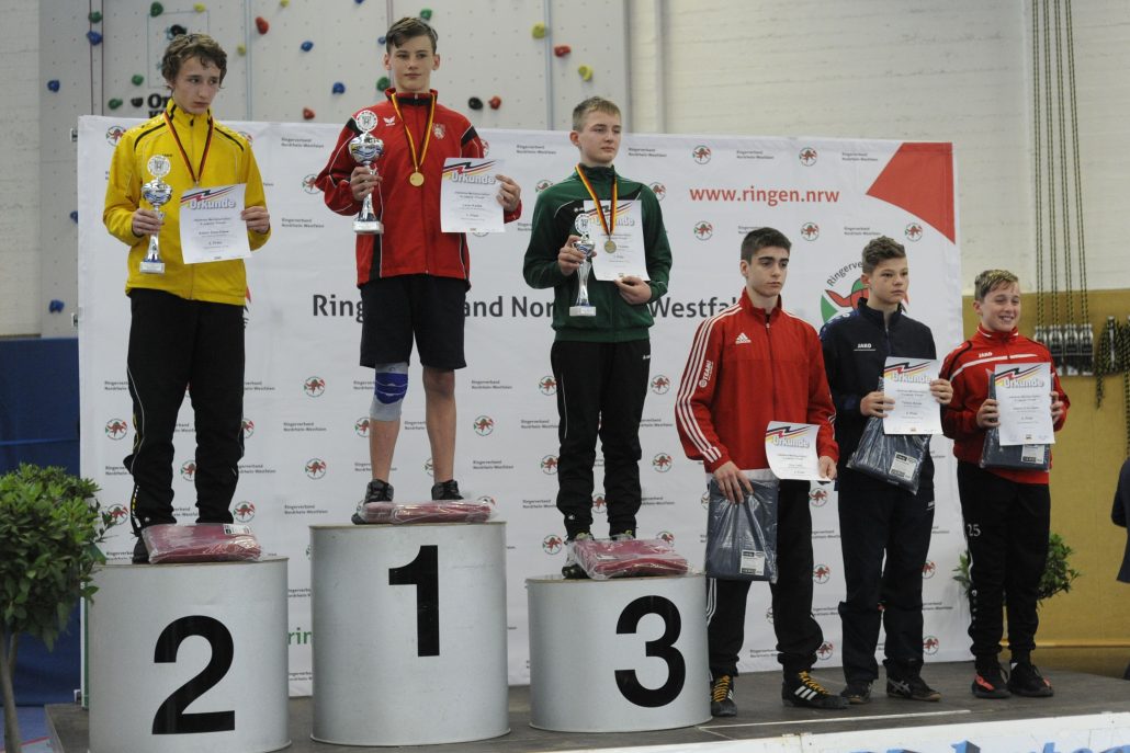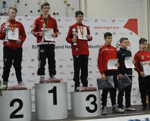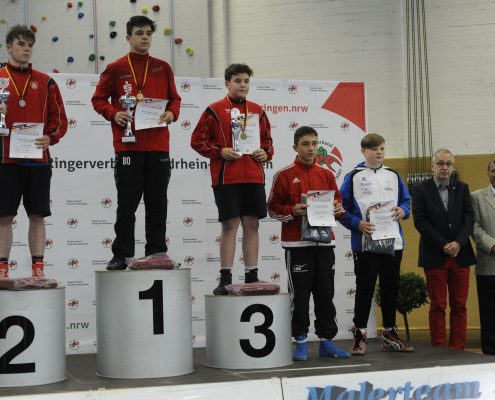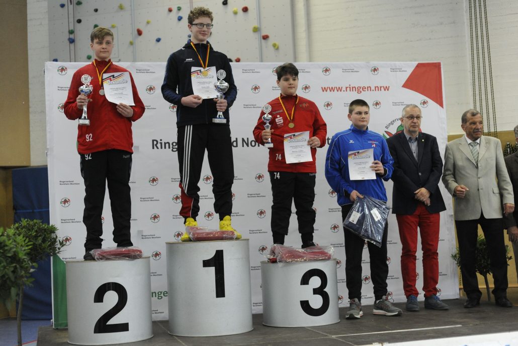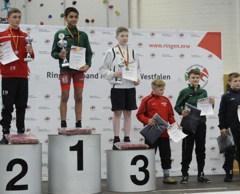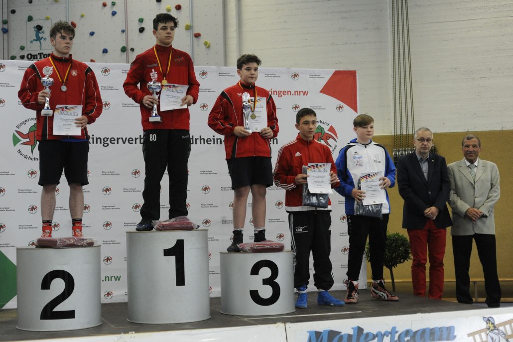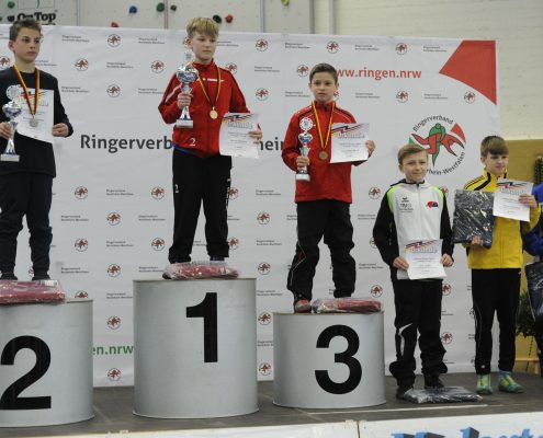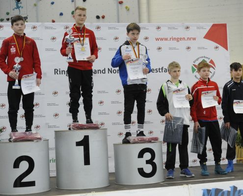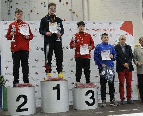 Die Siegerehrung – mit Pokalen, Medaillen, Urkunden und Präsenten – nahmen jeweils gemeinsam DRB-Jugendreferent Klaus Blank, DRB-Generalsekretär Karl-Martin Dittmann, Peter Neldner, Vizepräsident des Ringerverbandes Nordrhein-Westfalen, TSG-Geschäftsführer Ingo Elsterkamp, der TSG-Ehrenvorsitzende Wilfried Potthoff und Dieter Joachimi, Beigeordneter der Stadt Herdecke, vor.