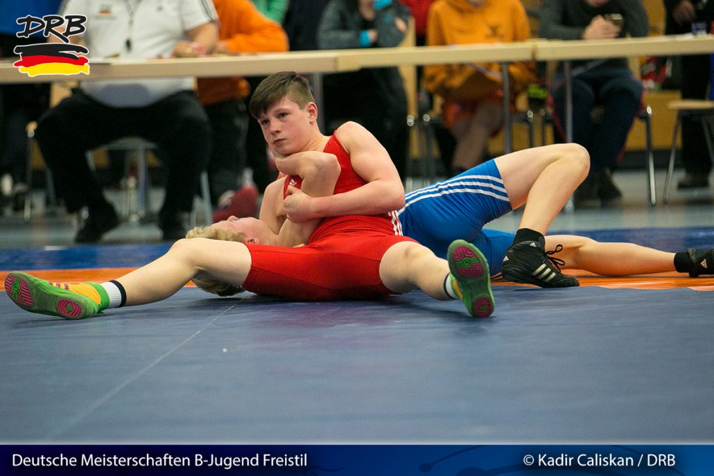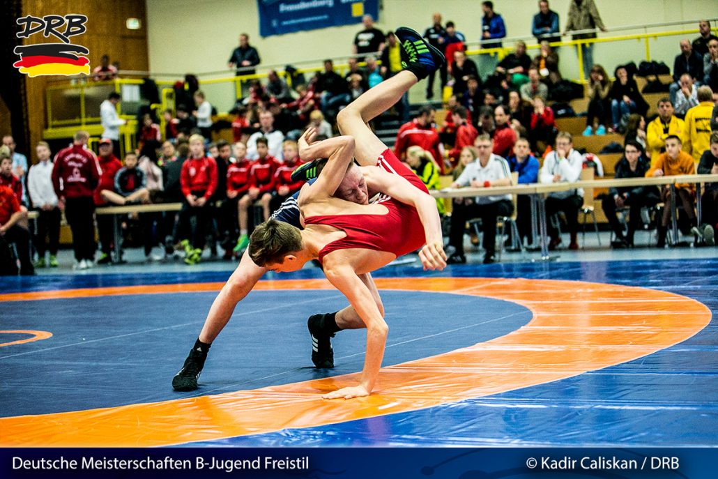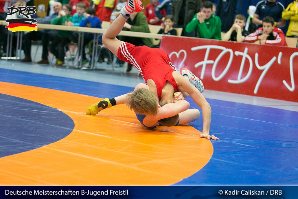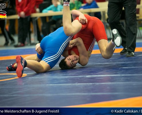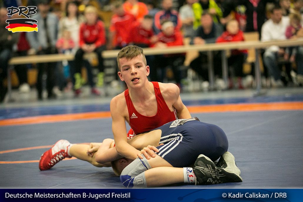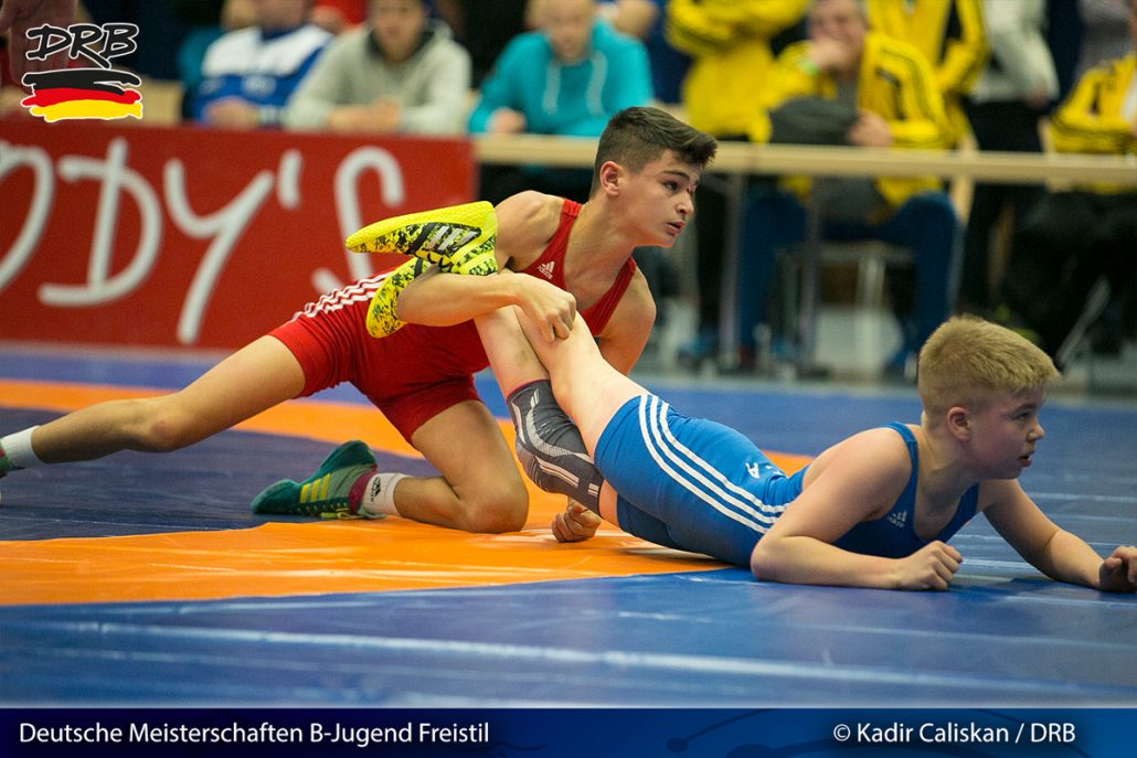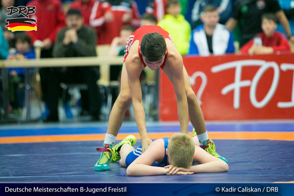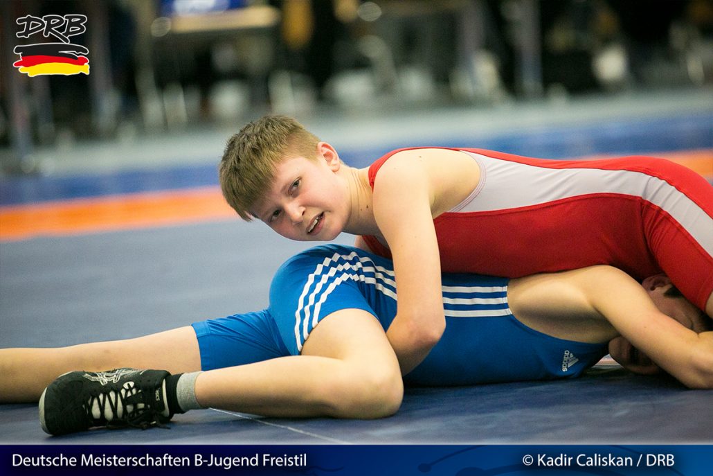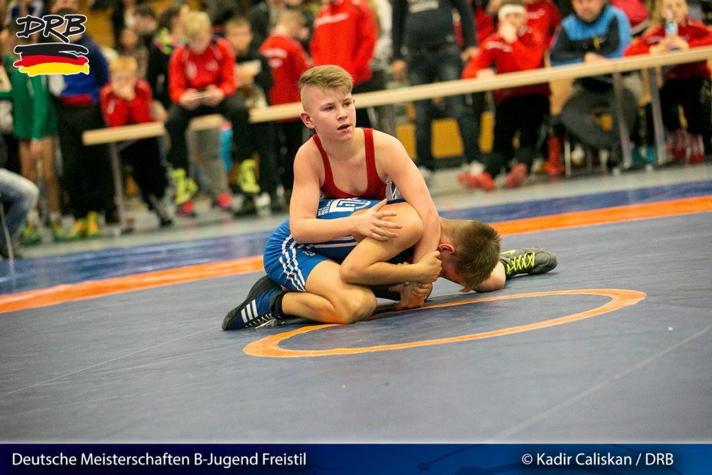Am vergangenen Wochenende (17.03.-19.03.) fanden die deutschen Titelkämpfe der B-Jugend statt. Die Wettkämpfe im freien Stil richtete der ASV Ladenburg in Heddesheim aus. Besonders wohl bei ihren Nachbarn in Nordbaden fühlten sich die Ringer aus Südbaden, die sich mit großem Abstand die Länderwertung sicherten. Am Sonntag stellten sich gar sieben Finalisten, das heißt mehr als jeder dritte Finalteilnehmer kam aus Südbaden. Am Ende sprangen dabei vier Titel durch Thomas Eckhardt (34kg), Dario Dittrich (42kg), Andrej Schwarzkopf (50kg) und Luca Munz (54kg) heraus. Die verbliebenen sechs Titel verteilten sich quer durch die Bundesrepublik. Bis 38kg siegte auf besonders beeindruckende Art und Weise Karamjeet Holstein (Sachsen), der Titel bis 46kg ging ins Saarland an Veysel Karakök. Philipp Nguyen Ho aus Warnemünde (MEV) hatte bis 58kg wenig Probleme mit der Konkurrenz und holte mit drei vorzeitigen Siegen Gold. Württemberg ergatterte seine einzige Goldmedaille bis 63kg, wo Stas David Wolf nach kleinen Startschwierigkeiten am Samstagmorgen souverän zum Titel marschierte. Gegen lediglich zwei Gegner musste sich Nori Opiela aus Thüringen im Limit bis 69kg durchsetzen um ganz oben auf dem Treppchen zu stehen. Im schwersten Gewicht bis 76kg ging Gold an die sonst so erfolgsverwöhnten Bayern, Yusuf Senyigit vom SV Johannis Nürnberg räumte am Samstag Emil Thiele, Sohn von Ex-Bundestrainer Sven, in einem spannenden Duell mit 5:2 aus dem Weg und ließ sich dann den ersten Platz nicht mehr nehmen.