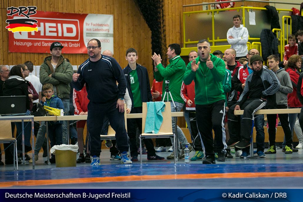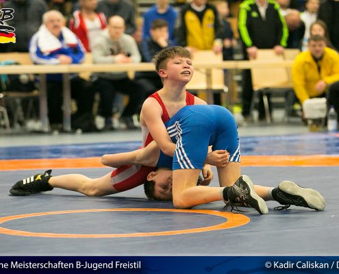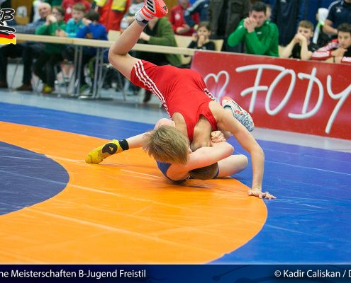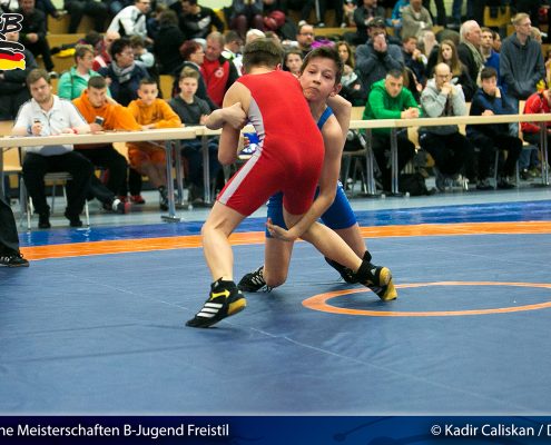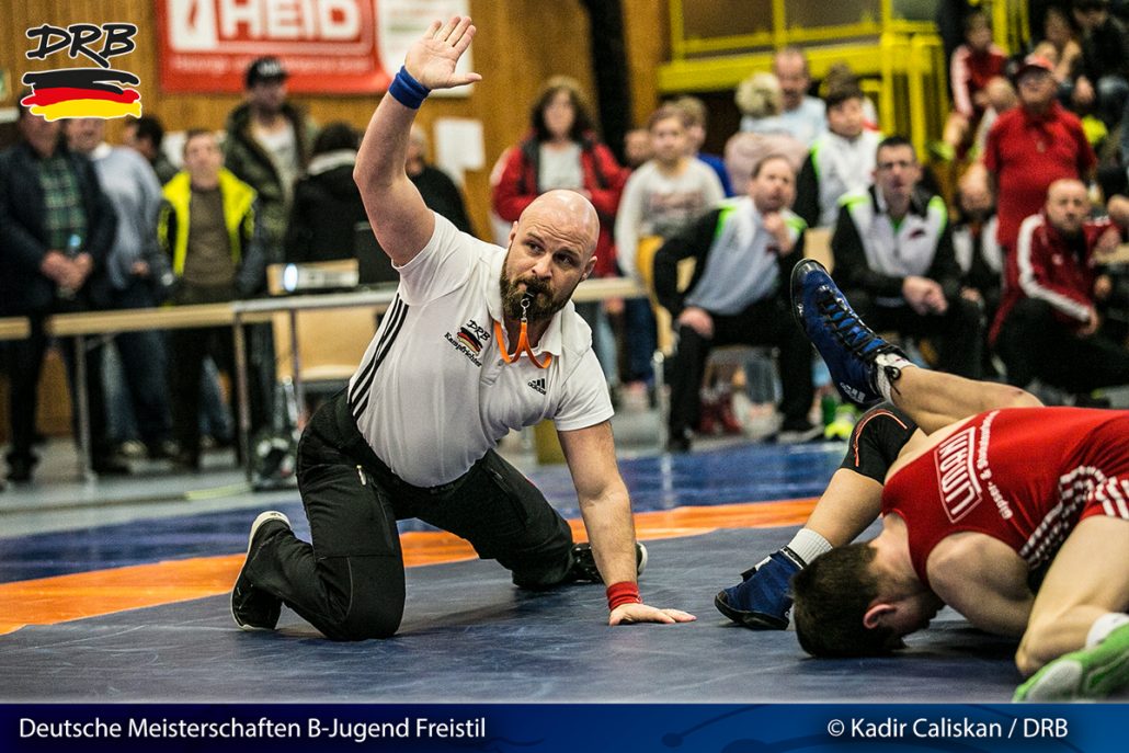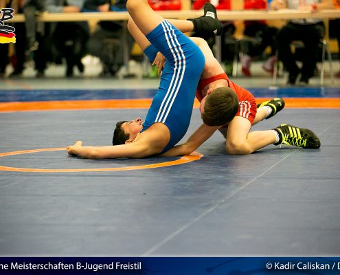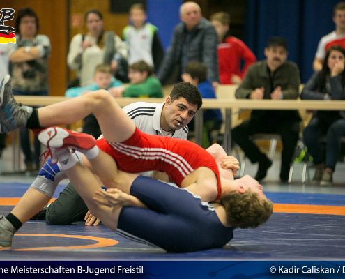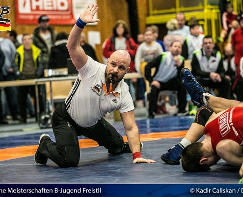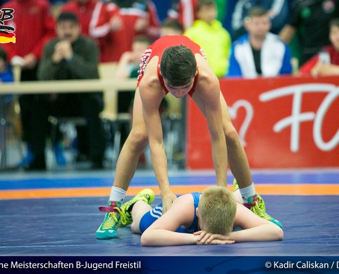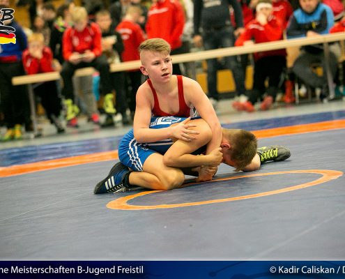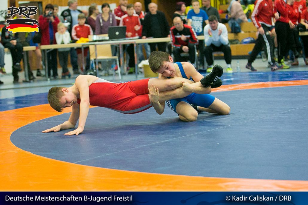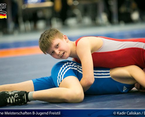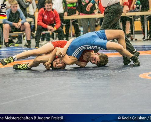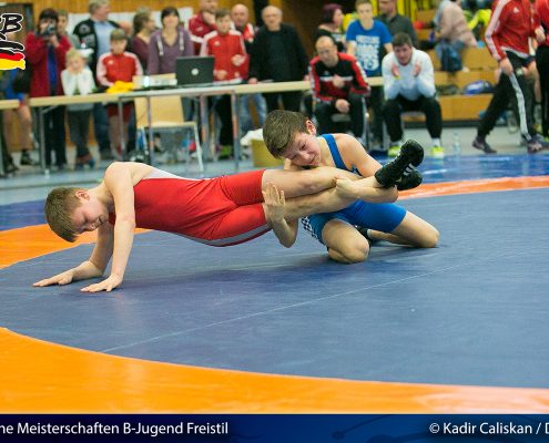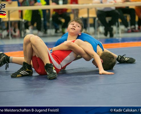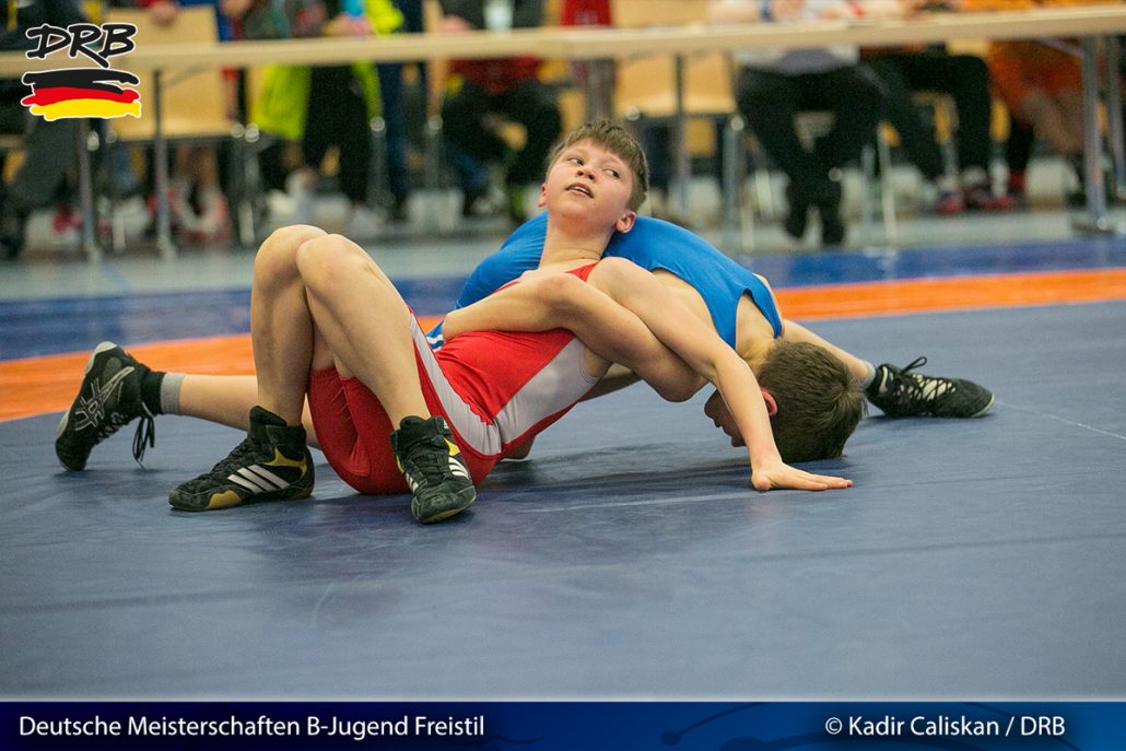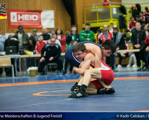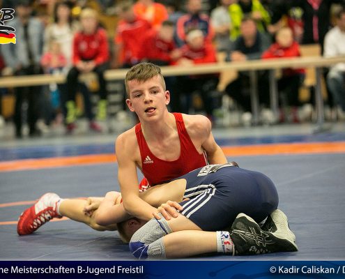 Am vergangenen Wochenende (17.03.-19.03.) fanden die deutschen Titelkämpfe der B-Jugend statt. Die Wettkämpfe im freien Stil richtete der ASV Ladenburg in Heddesheim aus. Besonders wohl bei ihren Nachbarn in Nordbaden fühlten sich die Ringer aus Südbaden, die sich mit großem Abstand die Länderwertung sicherten. Am Sonntag stellten sich gar sieben Finalisten, das heißt mehr als jeder dritte Finalteilnehmer kam aus Südbaden. Am Ende sprangen dabei vier Titel durch Thomas Eckhardt (34kg), Dario Dittrich (42kg), Andrej Schwarzkopf (50kg) und Luca Munz (54kg) heraus. Die verbliebenen sechs Titel verteilten sich quer durch die Bundesrepublik. Bis 38kg siegte auf besonders beeindruckende Art und Weise Karamjeet Holstein (Sachsen), der Titel bis 46kg ging ins Saarland an Veysel Karakök. Philipp Nguyen Ho aus Warnemünde (MEV) hatte bis 58kg wenig Probleme mit der Konkurrenz und holte mit drei vorzeitigen Siegen Gold. Württemberg ergatterte seine einzige Goldmedaille bis 63kg, wo Stas David Wolf nach kleinen Startschwierigkeiten am Samstagmorgen souverän zum Titel marschierte. Gegen lediglich zwei Gegner musste sich Nori Opiela aus Thüringen im Limit bis 69kg durchsetzen um ganz oben auf dem Treppchen zu stehen. Im schwersten Gewicht bis 76kg ging Gold an die sonst so erfolgsverwöhnten Bayern, Yusuf Senyigit vom SV Johannis Nürnberg räumte am Samstag Emil Thiele, Sohn von Ex-Bundestrainer Sven, in einem spannenden Duell mit 5:2 aus dem Weg und ließ sich dann den ersten Platz nicht mehr nehmen.