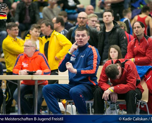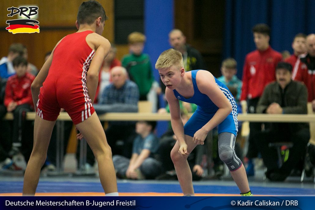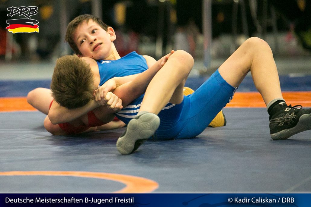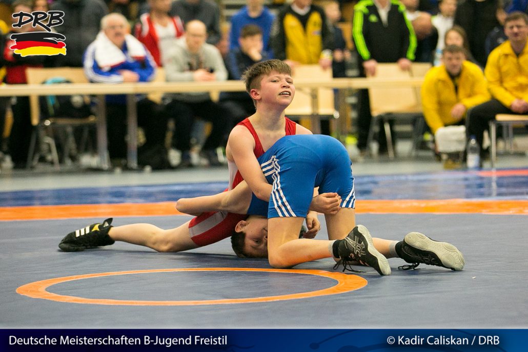 Die Meisterschaften im griechisch-römischen Stil fanden im Nordrhein-Westfälischen Hückelhoven statt und die Gastgeber wussten ihren Heimvorteil so richtig zu nutzen. NRW siegte in der Länderwertung knapp vor Südbaden. Großen Anteil daran hatten die Jungs aus Neuss. Die KSK Ringer sicherten sich am Ende sage und schreibe fünf der zehn zu vergebenden Titel und sorgten damit wohl für ein Novum im Nachwuchsbereich. Albert Nakaev gewann bis 38kg im länderinternen Finale gegen Noah Englich, bis 42kg ging der Titel an Aaron Bellscheidt, der die gesamte Konkurrenz dominierte und hochverdient den Sieg holte. Deutlich mehr zu kämpfen hatte Iwan Tagner bis 46kg, Ibrahim Deziev hingegen ließ noch weniger Zweifel bei seinem Heimsieg aufkommen. Alle seine fünf Duelle beendete er mit einem Schultersieg. Der fünfte im Bunde war Nikita Lejkin, der bis 63kg Körpergewicht eine super spannende Gewichtsklasse für sich entschied. Mit einer weiteren Bronzemedaille, sowie einem vierten und sechsten Platz, holten die Neusser alleine 68 der 87 LO-Punkte. Die restlichen fünf Titelträger kamen wie im freien Stil aus allen Ecken des Bundesgebietes. Das leichteste Limit bis 34kg war eine ausgeglichene Gewichtsklasse, letztendlich sicherte sich Luan Lauer aus Südbaden mit gleich mehreren packenden Siegen die Goldmedaille. Vom RSK Gelenau aus Sachsen holte Eric Hofmann bis 54kg den Titel durch fünf Schultersiege in fünf Duellen, überraschend vor allem in seinem dritten Duell, fast aussichtslos in Rückstand liegend drehte er den Spieß noch einmal um. Mit drei hauchdünnen Punktsiegen verdiente sich Witas Behrendt (Sachsen-Anhalt) seinen Pokal in der Gewichtsklasse bis 58kg redlich. Bis 69kg sicherte Vitaly Oslon vom SV Johannis den auch im griechisch-römischen abgeschlagenen Seriensieger Bayern den einzigen Titel. Ein spektakulärer Wurf genügte trotz Schrecksekunde kurz vor Ablauf der Zeit zum knappen 6:4 Finalsieg für den Nürnberger. In der höchsten Klasse bis 76kg setzten sich zwei Württemberger im nordischen Turnier durch. Nach dem direkten Duell bereits in Runde 1 und einem knappen Punktsieg über Alexander Peil, ließ sich Felix Weiß den Titel nicht mehr nehmen.