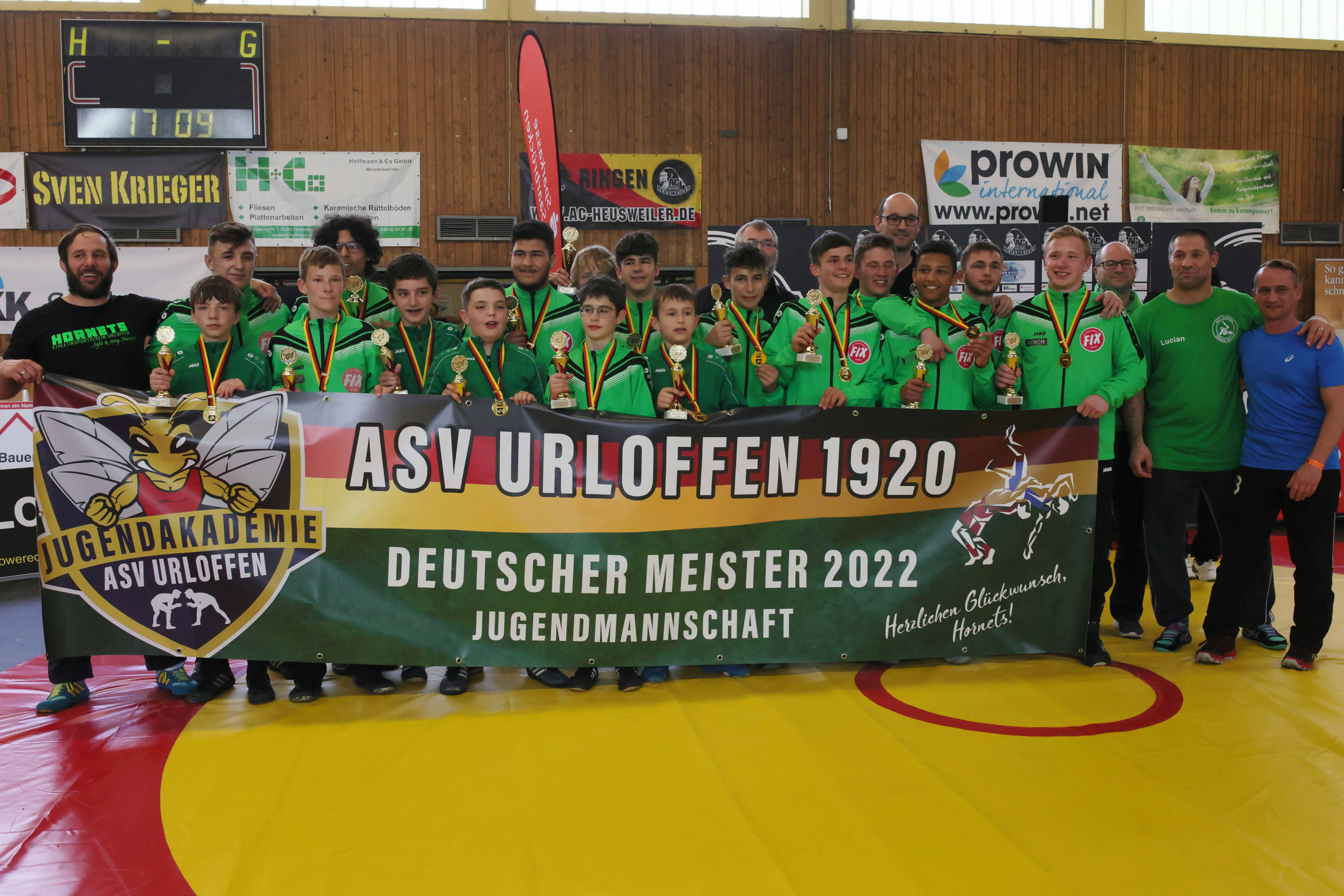Der Deutsche Ringerbund gratuliert dem ASV Urloffen zum Titelgewinn und bedankt sich bei allen teilnehmenden Teams mit ihrem Anhang und beim Ausrichter AC Heusweiler recht herzlich.