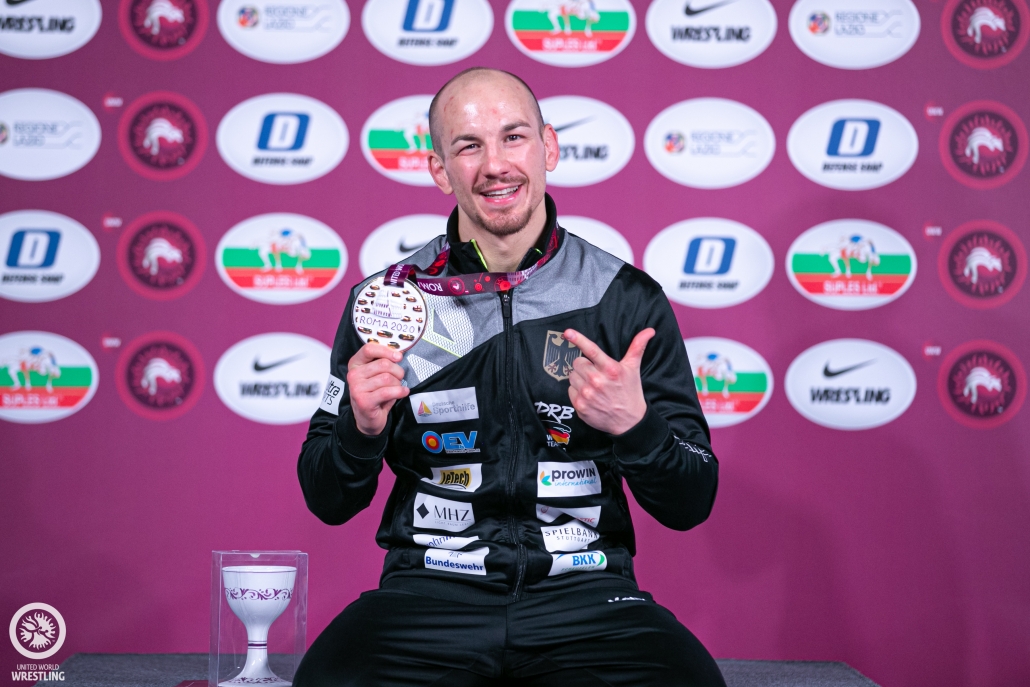 Die bereits von Werner angesprochene Überraschung lieferten zum Abschluss der Titelkämpfe die Freistilringer. Horst Lehr errang sich mit einem bärenstarken Turnier die Bronzemedaille. Bereits am Freitag überraschte er einige europäische Spitzenringer. Erst schaltete er den Dritten der U23 EM, Markovic (UKR), im Achtelfinale aus, im Viertelfinale dann den Aserbaidschaner Khasalov. Im Halbfinale unterlag er dem Russen Tuskaev denkbar knapp mit 4:5. Doch am zweiten Tag zeigte er sich von der Niederlage unbeeindruckt. Im kleinen Finale traf er auf dann auf den mehrfachen Medaillengewinner Georgi Vangelov (BUL). Auch hier bestätigte er seine Leistungen vom Vortag und brachte den Bulgaren mit seinen exzellenten Defensivkünsten nahezu zur Verzweiflung. Immer wieder befreite sich Lehr aus misslichen Lagen und punktete dabei selbst. Nach sechs Minuten setzte er sich mit 6:3 Punkten durch und feierte seine erste Medaille im Seniorenbereich direkt bei seinem zweiten Auftritt. Auch seine Teamkollegen waren oftmals nah dran am Edelmetall. Niklas Dorn, Gennadij Cudinovic und Lars Schäffle kämpften sich ebenfalls bis in kleine Finale vor, unterlagen jedoch knapp und auch Niklas Dorn zeigte bei seinem 7. Platz starke Turnierleistungen.