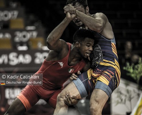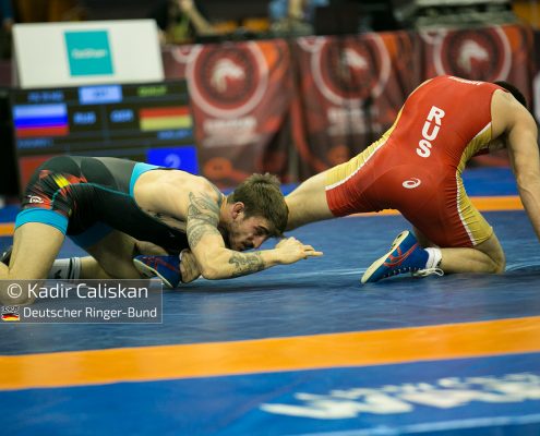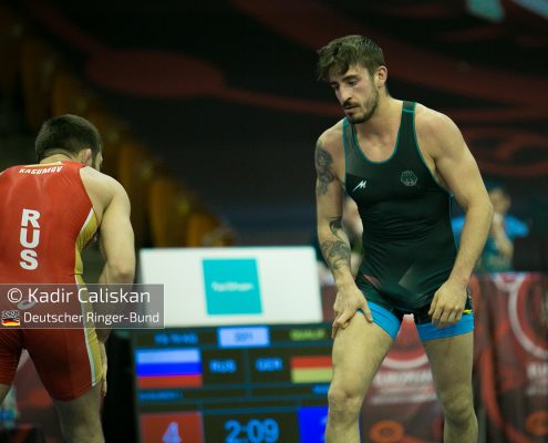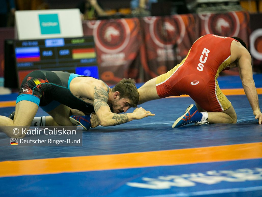 Tag 4 begann mit einem kleinen Schockmoment für das deutsche Team. Ex-Weltmeisterin Aline Focken unterlag ihr Auftaktmatch gegen Alla Cherkasova aus der Ukraine auf Schulter. Nachdem Aline den Kampf die ersten drei Minuten unter Kontrolle hatte und in Führung lag, geriet sie im zweiten Durchgang in die Zange und unterlag. Die Ukrainerin verletzte sich im weiteren Turnierverlauf und somit schied Aline aus. Nicht viel besser lief es bei Tim Müller. Das Los bescherte ihm gleich in der Qualifikation mit Israil Kasumov (RUS) einen harten Brocken und Tim war beim 2:12 chancenlos. Da Kasumov im Halbfinale an Ghadziev (POL) scheiterte, war auch für Müller das Turnier frühzeitig beendet.