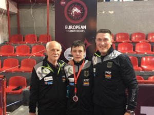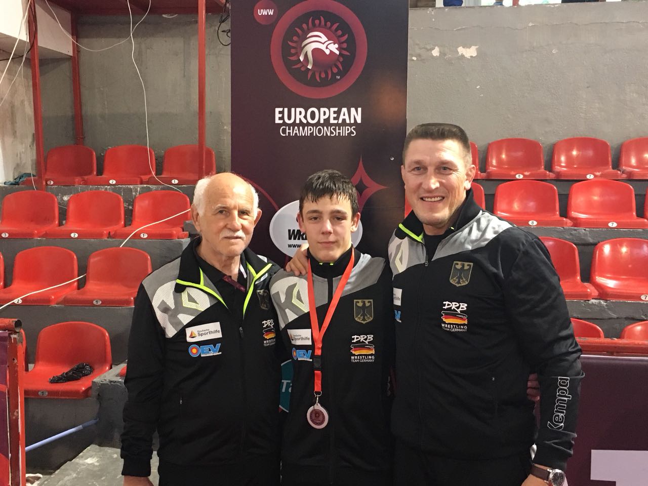 Samuel Bellscheidt gewinnt bei den Kadetten Europameisterschaften in Skopje in der Gewichtsklasse bis 65 greco EM-Silber.