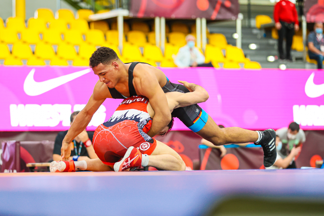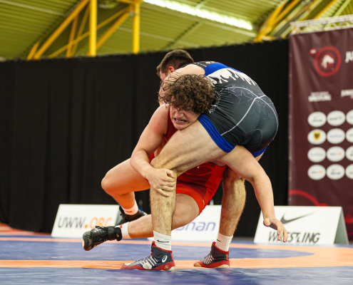 Auch der Auftakt für die Athleten die erstmals in das Turnier eingriffen gelang. Joshua Morodion überzeugte mit einem ganz starken Auftaktkampf und fegte den Aserbaidschaner Mayilov mit 12:1 von der Matte. Im Viertelfinale zeigte Morodion dann eine Glanzleistung gegen den Bronzemedaillengewinner der diesjährigen U23 EM, Emre Ciftci (TUR). Nach einem packenden Kampf verließ er die Matte mit einem 6:6 Punktsieg aufgrund der höheren Wertung und steht somit am Abend im Halbfinale.
