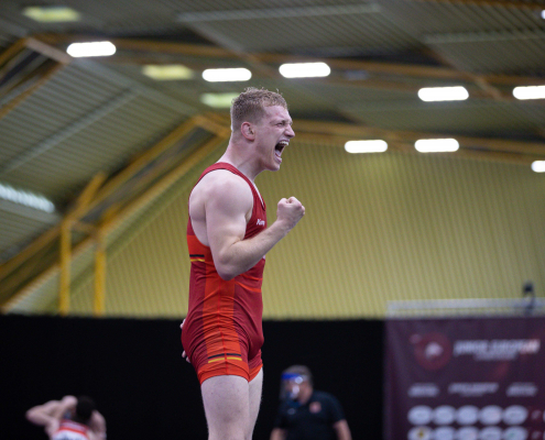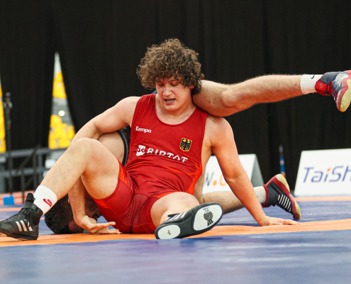 Den bisherigen Höhepunkt setzte jedoch Richard Schröder in der Abendveranstaltung. Im kleinen Finale bis 79kg zeigte er einen ganz abgeklärten Kampf und hielt Viktor Krupa (UKR) über sechs Minuten erfolgreich in Schach. Mit einer taktischen Meisterleistung behielt er mit 2:1 die Oberhand und holte die erste Medaille für den Deutschen Ringer Bund!