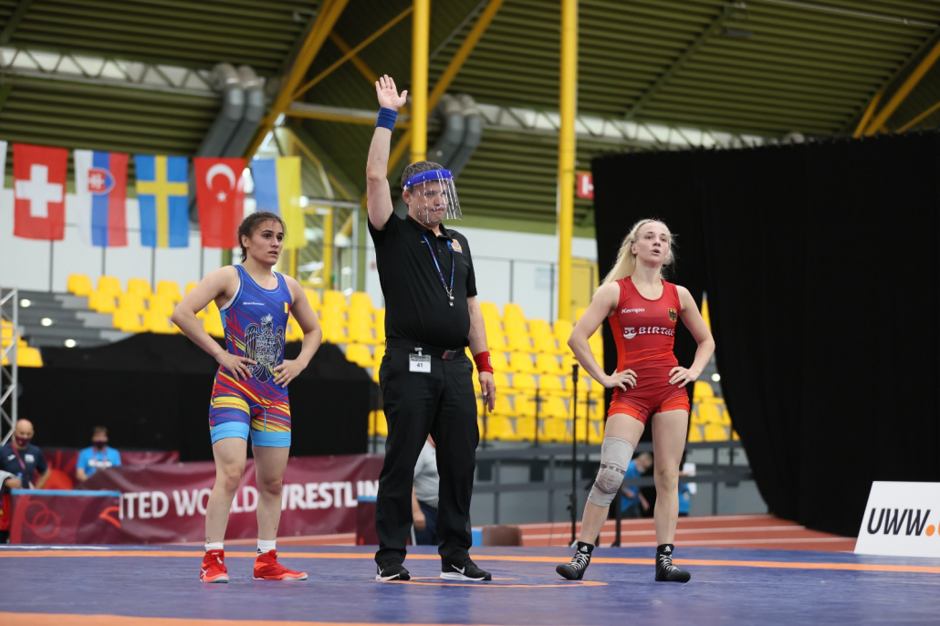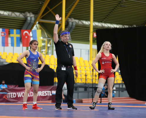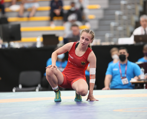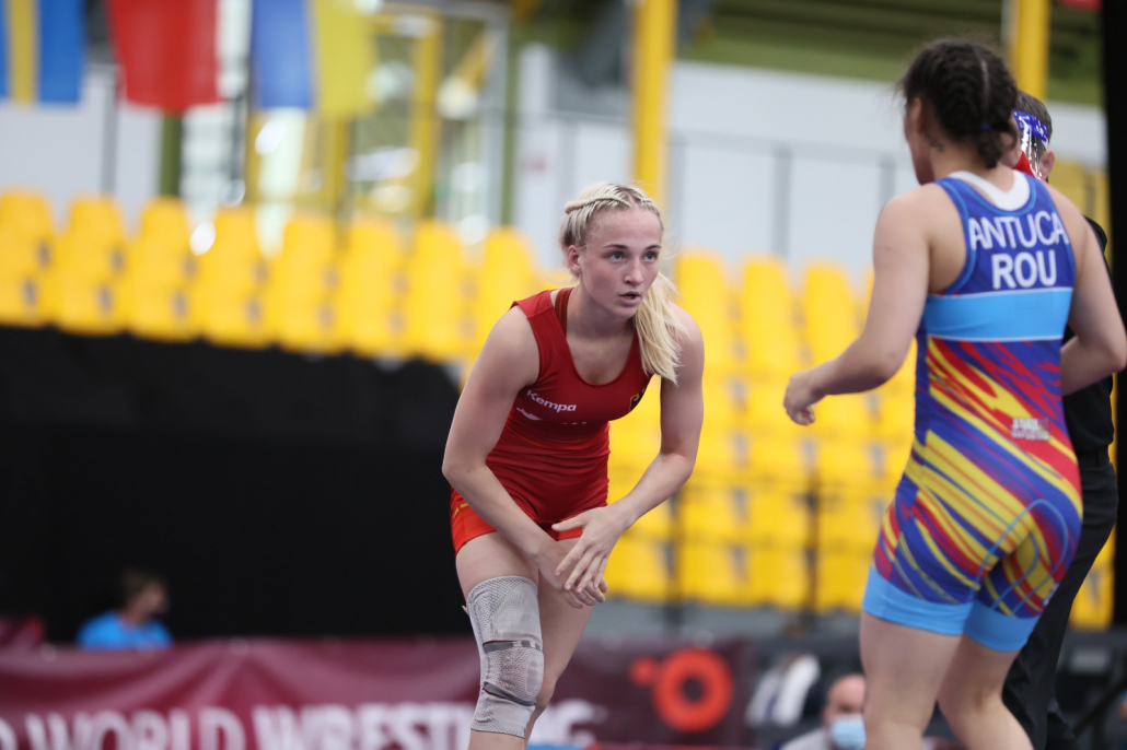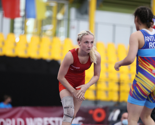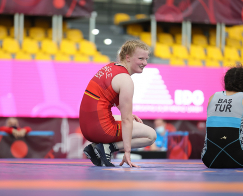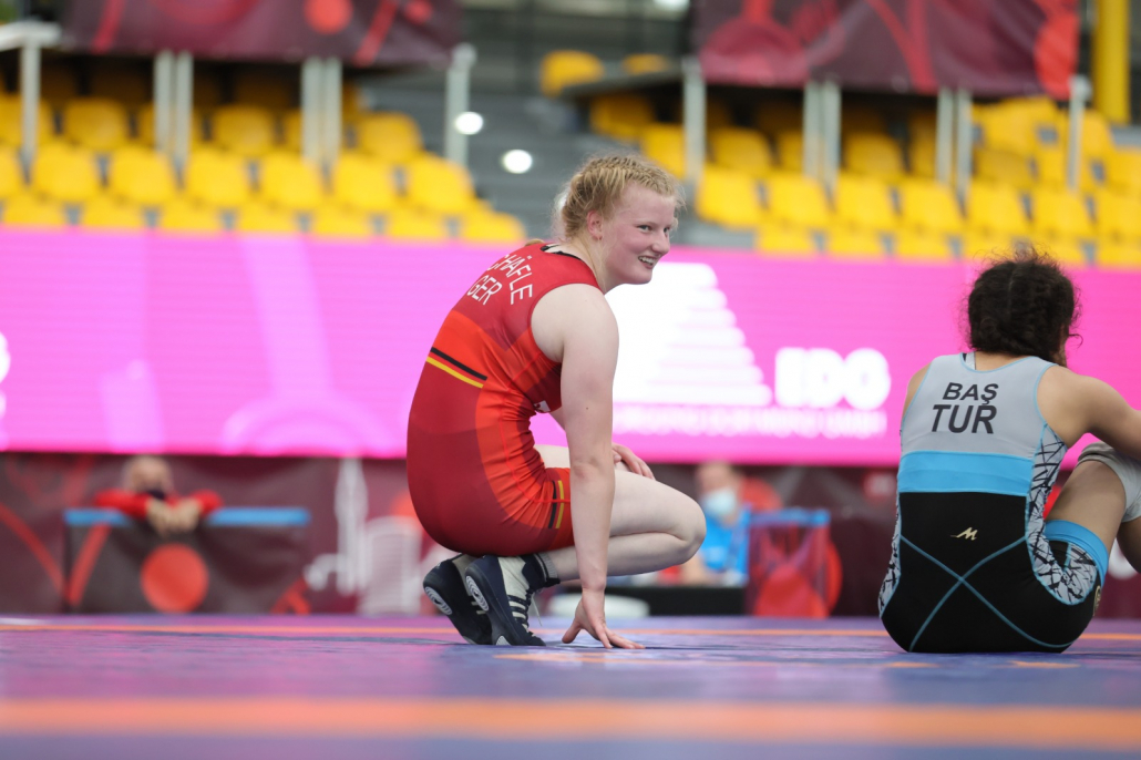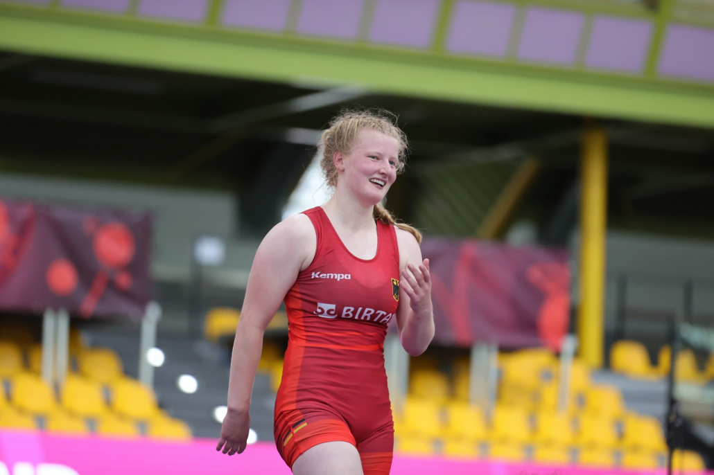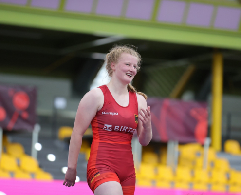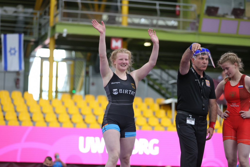 Somit hielt einzig Sophia Schäfle die deutschen Fahnen hoch, die aufgrund ihrer Auslosung in der ersten Runde keinen Kampf zu bestreiten hatte und direkt im Viertelfinale der 68kg Klasse startete. Dort wartete mit der 3. der U23 EM Nesrin BAS (TUR) eine starke Gegnerin. Doch Schäfle zeigte einen ganz starken Kampf, nach frühem Rückstand drehte sie auf und zermürbte die Türkin regelrecht. Nach sechs Minuten stand sie als 5:2 Siegerin fest und traf am frühen Abend im Halbfinale auf die Russin Eliza Petliakova. In einem packenden Kampf lieferte Sophia eine bärenstarke Aufholjagd und egalisierte in der zweiten Runde einen 2:10 Rückstand! Aufgrund der höheren Wertung verließ Schäfle die Matte als Siegerin und steht am Donnerstag im Finale um die Goldmedaille!