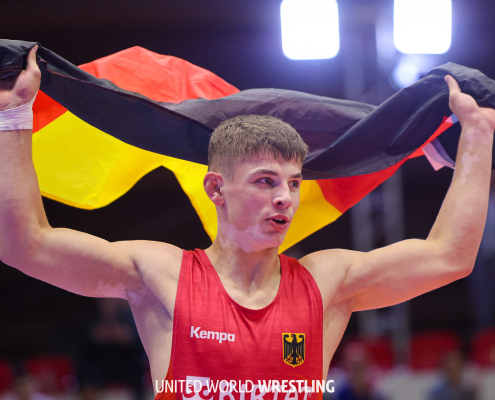 Tirana, Albanien – Manuel Wagin hat bei den U17-Europameisterschaften die Goldmedaille in der Gewichtsklasse bis 65kg im freien Stil gewonnen. Er besiegte im Finale den Türken Remzi Temur mit 5:4.