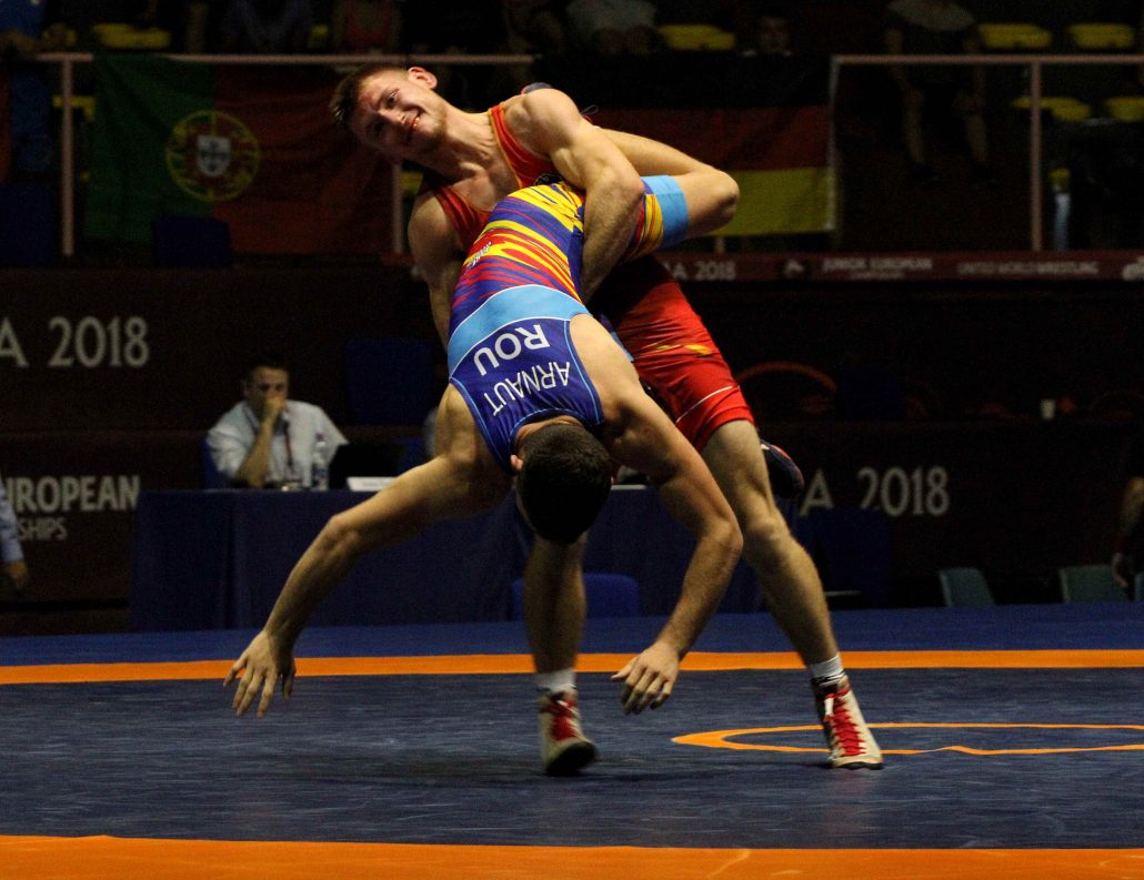 Nach Franz Richter, der am ersten Tag das Finale erreichte, schaffte auch Andrej Ginc (60 kg/SAV Torgelow) am Tag 2 der Junioren-Europameisterschaften den Sprung in den Kampf um die Goldmedaille. Und was hatte der junge Ringer aus dem Bunde-Leistungszentrum Frankfurt(O.) für ein Hammer-Los. Zunächst zwang Andrej Ginc dem Lokalmatadoren Jacopo Sandron (ITA) gegenüber, der in diesem Jahr schon einige Erfolge bei Meisterschaften der Männer und U-23 sammelte. Ginc überraschte den Italiener mit einem Wurf und gab die Führung, die er bis zum 8:2-Endstand noch ausbauen konnte, nicht mehr her. Schwer wurde es auch im Viertelfinale gegen Razvan Arnaut (ROU), den er ebenso nach hartem Kampf in die Schranken wies. Riesen Jubel im deutschen Lager, als Andre Ginc im Halbfinalduell auch den Ukrainer Ivan Cherkas mit 5:0 Punkten – und souveräner Kampfesweise bezwang. Nach dem Abpfiff brach die gesamte Anspannung aus dem DRB-Starter heraus, der mit dem Sieg über Cherkas am Mittwochabend im Finale steht. Dort steht er dem russischen Spitzenringer Abu Amaev gegenüber.