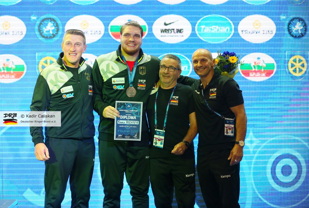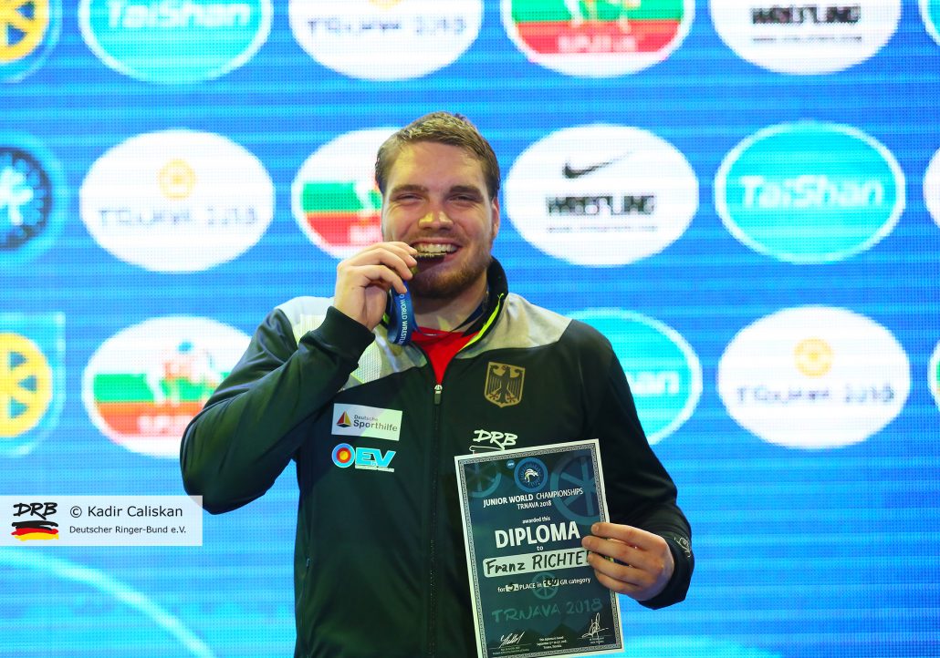 Gleich am zweiten Wettkampftag gab es die erste Medaille für das deutsche Team bei der Junioren Weltmeisterschaft in Trnava. Nachdem er am Vortag im Viertelfinale ganz knapp am späteren Weltmeister Amin Mirzazadeh (IRI) gescheitert war, zog Franz Richter heute in der Hoffnungsrunde ins kleine Finale um Bronze ein.