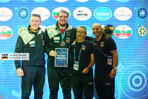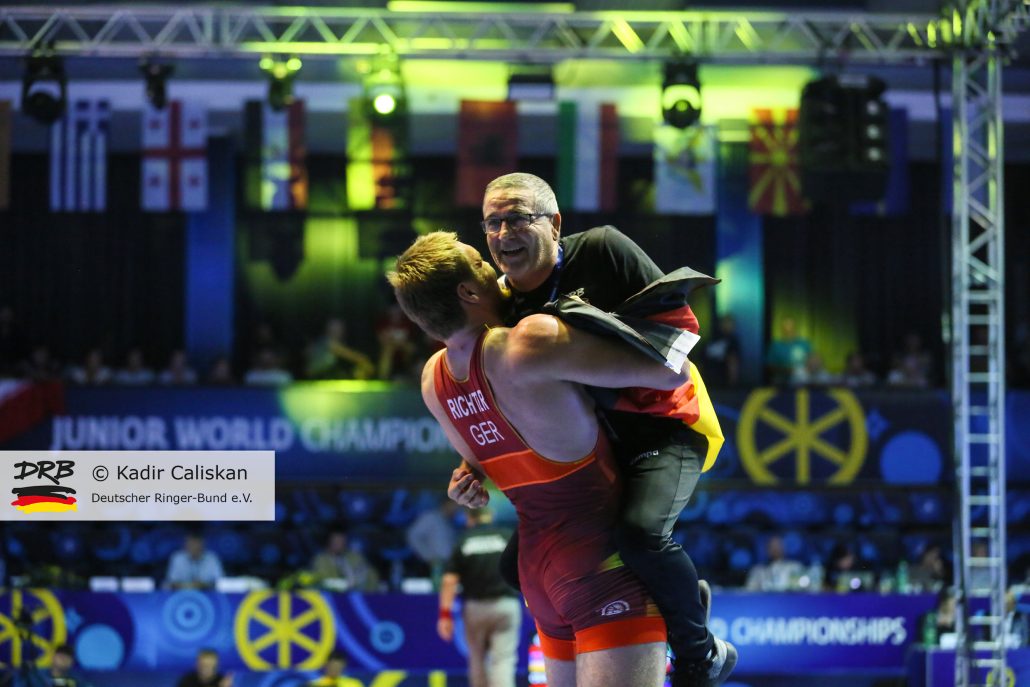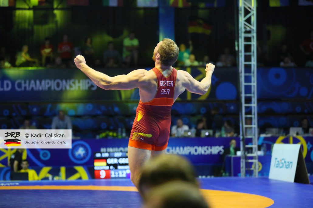 Gegner heute Mittag war der Türke Fatih Bozkurt, gegen den Richter erneut einen starken Kampf zeigte und sich nach 6 Minuten mit 1:1 durchsetzte. Im kleinen Finale traf er auf seinen Halbfinalgegner der vergangenen EM, Beka Makaridze. Wie bereits in Italien ließ er von Beginn weg keinen Zweifel aufkommen, wer am Ende als Sieger von der Matte geht und punktete den Georgier vorzeitig mit 10:0 aus. Die Freude über die erste WM Medaille war riesig, auch wenn Franz nach den zwei anstrengenden Wettkampftagen noch nicht 100% fassen kann und sich vor allem auf das Ende der Woche freut, wo dann die Medaille gebührend gefeiert wird.