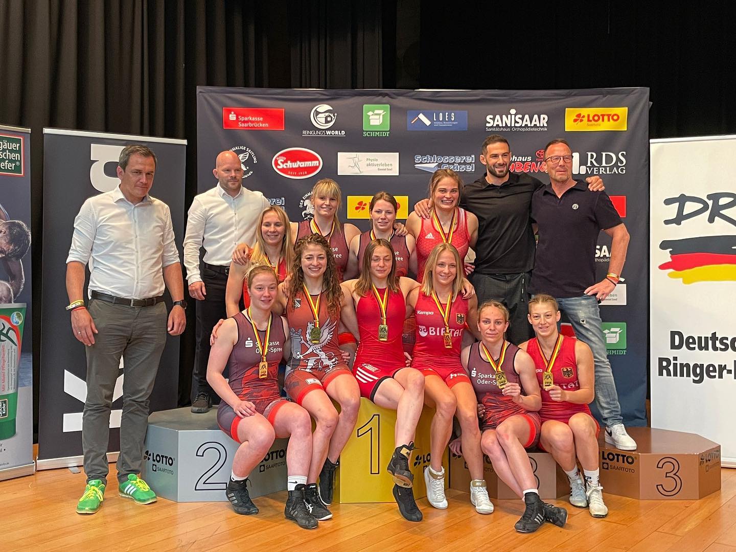 Bei den Frauen wurde mit Ausnahme der Gewichtsklassen 50kg und 55kg nordisch gerungen, so dass bereits am Abend die Deutschen Meisterinnen feststanden. In der Gewichtsklasse bis 53kg wurde Olivia Andrich vom SV Luftfahrt Ringen Deutsche Meisterin vor Angelina Purschke vom SV Warnemünde. Platz 3 belegte unter großem Jubel der saarländischen Zuschauer Sophie Seimetz vom KSV Köllerbach.