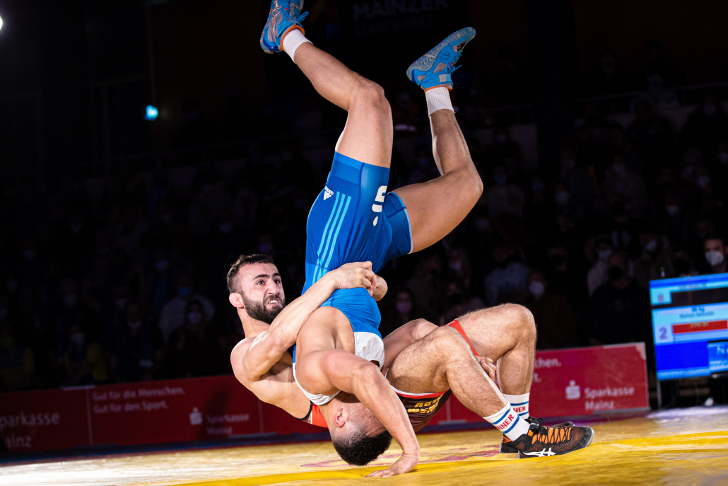 Der türkische Vizeweltmeister des Vorjahres Burhan Akbudak (86 kg/GR) ließ den Deutschen Meister Karan Mosebach keine Chance, 16:0 stand es nach dreieinhalb Minuten, Mainz baute die Führung vor 500 Fans auf 12:5 aus.