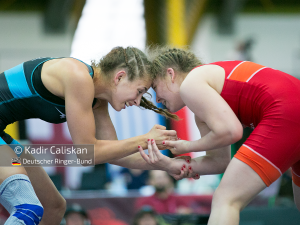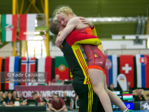 Gleich im Duell darauf ging es dann für Elena Brugger um die Medaille. Im kleinen Finale traf sie auf Jenna Sihtola (FIN). Elena zeigte sich von der Punktniederlage im Halbfinale gut erholt und zwang der Finnin gleich von Beginn an ihren Kampfstil auf. Jedoch konnte die Finnin in einer ereignisarmen ersten Hälfte die erste Wertung erzielen und lag zur Pause mit 2:0 in Front. Nachdem Elena nach 4 Minuten zuerst bei einem Angriffsversuch gekontert wurde, errang sie direkt im Anschluss die Oberlage und schulterte Sihtola im Bodenkampf! Somit die nächste Medaille für die DRB-Mädels.