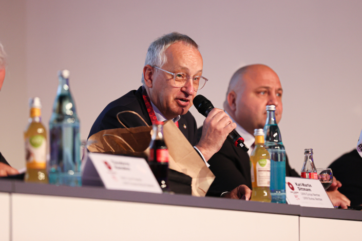 Manfred Werner selbst freute sich neben seiner tollen Auszeichnung vor allem über die Wahl seines Generalsekretärs Karl-Martin Dittmann zum Präsidenten des Europäischen Ringerverbands und gratulierte umgehend: “ Diese Wahl ist für die Person Karl-Martin Dittmann und den Deutschen Ringer Bund eine sehr große Anerkennung durch den Kongress der 38 anwesenden Nationen. Ich bin überzeugt Karl-Martin wird diese Funktion mit sehr viel Energie und Leidenschaft ausfüllen und großartige Arbeit leisten. Er widmet sein Leben dem Ringkampfsport und blickt schon jetzt auf eine beeindruckende Vita zurück.“