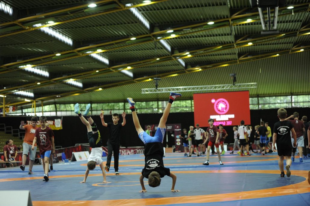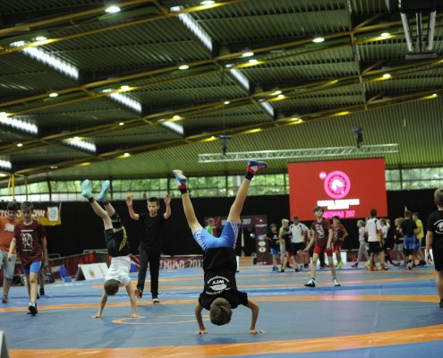 Damit die Trainingsgruppe nicht zu groß war, wurden die Camp-Teilnehmer auf zwei Gruppen aufgeteilt, die nacheinander trainierten. Unterschieden nach Stilarten wurde dabei nicht, denn: „Wir haben normalerweise in jeder Trainingseinheit einen Freistil- und einen Griechisch-Römisch-Trainer auf der Matte. Außerdem sind die Größeren zwar schon spezialisiert, aber im Verein trainieren sie auch häufig Freistil und Griechisch-Römisch“, erläutert Frank King.