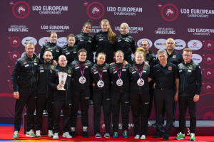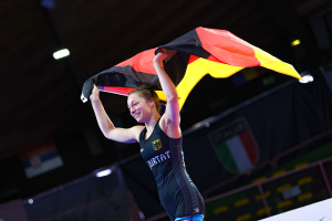 Rom – Die deutschen Ringerinnen bleiben bei den Junioren-Europameisterschaften in Rom (ITA) in der Erfolgsspur. Nachdem Sophia Schäfle (68 kg/RKG Freiburg 2000) am Donnerstagabend Bronze gewonnen hatte, Rebekka March (55 kg/SV Warnemünde) und Laura Kühn (76 kg/SV Luftfahrt Ringen Berlin) fünfte Plätze erreichten, holten die jungen Damen um Bundestrainer Christoph Ewald am 5. Wettkampftag einen kompletten Medaillensatz.