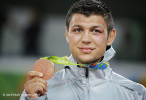 Auf dem Weg zur Medaille hatte der erst 21-jährige Denis Kudla einige Brocken aus dem Weg zu räumen, denn er hatte ein richtig hartes Los erwischt. Bis auf Weltmeister Zhan Belenyuk tummelten sich alle Favoriten im unteren Teilnehmerfeld und befinden sich somit auf Kudlas Weg zu einer Medaille. Nichts desto trotz startete der Aichacher perfekt ins Turnier. In der Qualifikation schaltete er den Asienmeister KENZHEEV aus Kirgisien mit einer starken Rolle im Bodenkampf aus, bevor es im Achtelfinale zu einem harten Gefecht mit Vize-Europameister Robert Kobliashvili kam. Nach 6 Minuten setzte sich Denis mit einer taktischen Meisterleistung knapp mit 1:1 durch und zog somit ebenfalls ins Viertelfinale ein. Dort war der spätere Olympiasieger Davit Chakvetadze, der einen unglaublich starken Wettkampf ablieferte, allerdings eine Nummer zu groß und Denis unterlag. Nachdem Chakvetadze ins Finale einzog, konnte Denis am Abend in der Hoffnungsrunde erneut in den Wettkampf eingreifen. Anders als bei internationalen Wettkämpfen üblich, startete die Hoffnungsrunde bei den Spielen nicht am Vormittag, sondern erst unmittelbar vor den Medaillenkämpfen. Dort traf Denis auf den dritten der Weltmeisterschaft, Habibolla Akhlaghi aus dem Iran und erneut bewies er seine Nervenstärke. Denn auch in diesem Duell siegte am Ende die bessere Taktik. Nach 6 ausgeglichenen Minuten behauptete sich Denis erneut knapp mit 1:1 und stand somit im kleinen Finale. Dem Modus geschuldet blieben allerdings vor dem bisher wichtigsten Kampf seiner Karriere nur 20 Minuten um wieder zu Kräften zu kommen. Doch davon ließ sich der Kudla nicht beirren und zeigte einen tollen Kampf um Bronze. Gegner Viktor Loerincz hat schon zahlreiche internationale Medaillen gesammelt und ging leicht favorisiert in den Finalkampf. Denis war die Erschöpfung anzusehen, trotzdem konnte er in der ersten Runde in der Oberlage punkten und ging aufgrund einer Verwarnung für den Ungarn mit 2:0 in Führung. Mitte der zweiten Hälfte konnte Loerincz ausgleichen und ging kurz darauf aufgrund der dritten Passivität von Denis gar mit 3:2 in Front. Doch Kudla zeigte in der letzten Minute einen wahren Kraftakt und wurde bei 5:35 Minuten belohnt, denn auch der Ungar kassierte seine dritte Passivitätsermahnung und Kudla ging mit 3:3 wieder in Führung, welche er dann auch über die Zeit retten konnte. Im Anschluss dann Freude pur.