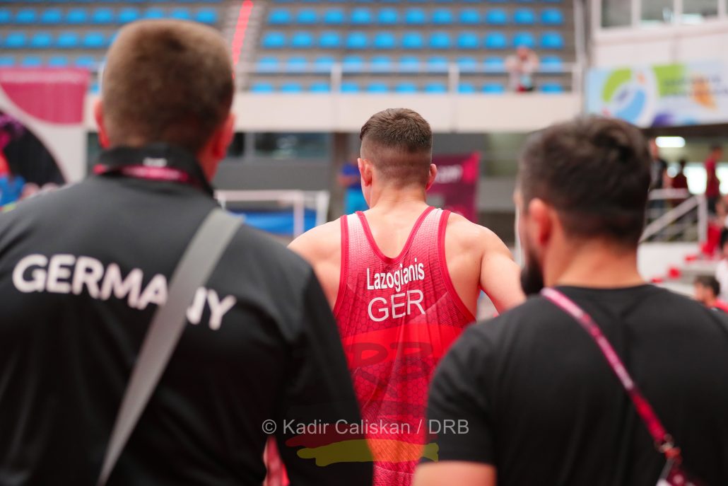 Ganz bitter verlor Lucas Lazogianis das Halbfinale nach einer 5:0 Führung gegen den Ungarn Istvan TAKACS mit 5:6 Punkten und ringt um die Bronzemedaille.