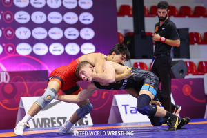 Tirana, Albanien – Neben den Erfolgen der DRB-Mädels bei den U17-Europameisterschaften in Tirana sorgte Freistiler Manuel Wagin für weiteren Jubel. Das 16jährige Ausnahmetalent legte von Anfang los. Wenig Mühe hatte Wagin in der Qualifikation und im Achtelfinale gegen Samuel Sedlak (SVK) und Angelo Cannistraro (ITA), die er beide technisch-überlegen mit 14:2 und 10:0 besiegte. Im Viertelfinale wartete mit dem Georgier Zurab Abalaki ein dicker Brocken auf Wagin. Anfangs verhalten, stellte sich Wagin mehr und mehr auf den Georgier ein und drehte den kurzen 0:1-Rückstand auf ein souveränes 7:1. Im entscheidenden Halbfinale gegen den Armenier Vladimir Azaryan führte Wagin wieder mit 3:2 eher der Armenier zum Schlussspurt anzog. Doch Wagin hielt Stand und brachte das 5:3 über die Ziellinie und feierte nach dem Gewinn der Bronzemedaille im letzten Jahr den EM-Finaleinzug.