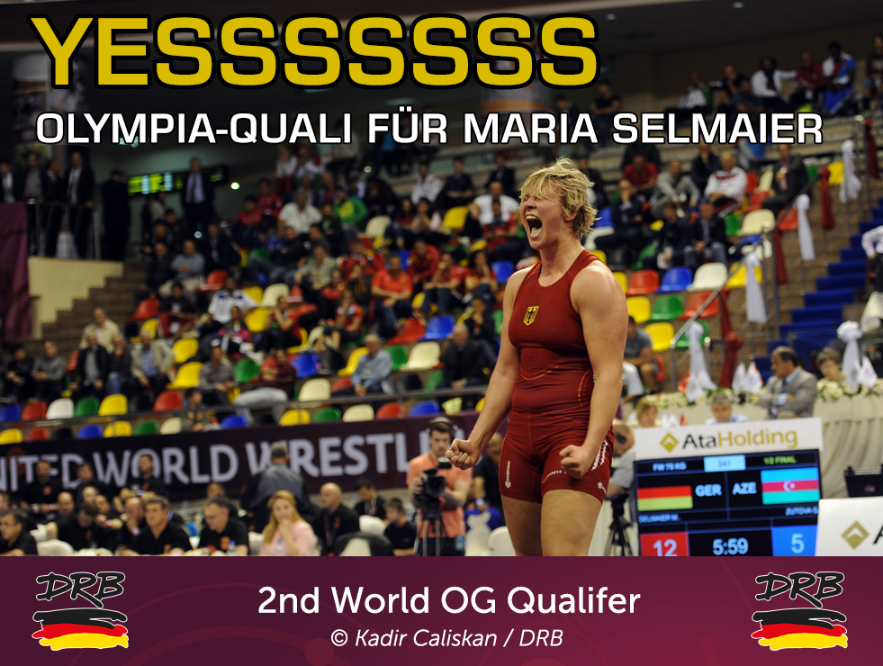 Nach dem tollen Start an Tag 1 mit Quali Nr. 6 durch Denis Kudla, gab es auch am zweiten Tag für den DRB gehörig was zu feiern. Maria Selmaier sicherte sich mit einem bärenstarken Wettkampf ihr Ticket und damit das insgesamt siebte für den Deutschen Ringer Bund. Gleich in der Qualifikation löste sie die Aufgabe gegen die Norwegerin Solheim souverän, im Viertelfinale fegte Maria anschließend Rivera Suarez mit 10:0 von der Matte und stand im Halbfinale. Dort traf sie auf Gozal Zutova. Die Azerbaidschaner schaltete zuvor die starke Mongolin Ochirbat (Vize-Weltmeisterin) aus, gegen Maria hatte sie jedoch keine Chance. Von Beginn an dominierte Maria das Geschehen, blieb trotz unfairer Kampfführung der Gegnerin ruhig und landete einen auch in der Höhe verdienten 12:5 Punktsieg. Im Finale am Abend wartet die Russin Ekatarina Bukina.