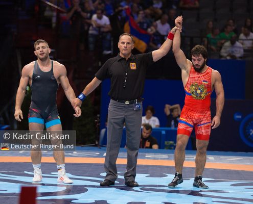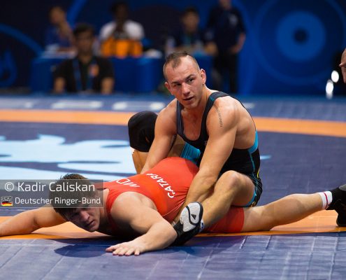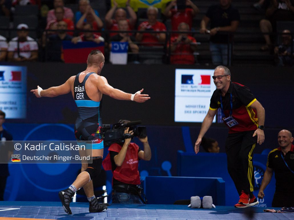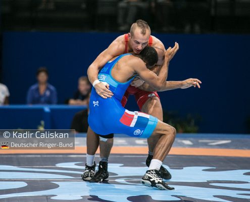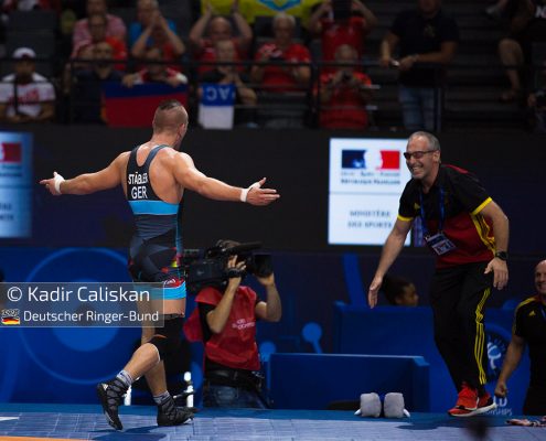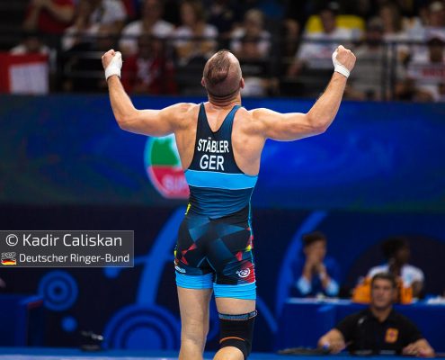 Wieder machte Stäbler den Anfang und konnte erneut einen Weltklassekampf. Bereits in den ersten Sekunden ging Frank in Führung, Cataraga konnte zwar verkürzen, doch nach der Pause kontrollierte Stäbler wieder das Geschehen und siegte mit 4:2 Punkten. Die Freude über den Finaleinzug seines Mannschaftskollegen galt es nun für Kudla auszublenden. Der Verlauf seines Halbfinals belegt, dass das hervorragend gelang. Gegen einen äußerst passiven Gegner sammelte Denis Punkt um Punkt, geriet lediglich am Mattenrand einmal kurz in Bedrängnis und musste einen Punkt abgeben. Das Endergebnis lautete, wie bereits in seinem Viertelfinale, wieder 4:1 und damit zog auch der zweite Deutsche ins Finale ein.