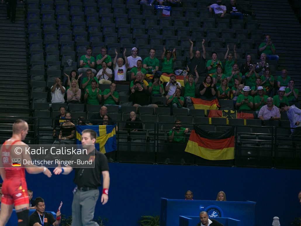 Nach ihrem erfolgreichen Start standen Frank Stäbler und Denis Kudla am Mittag zeitgleich im Achtelfinale. Stäbler hat ein hartes Los erwischt, nach dem Weltmeister im 1/16 Finale wartete nun der Silbermedaillengewinner der diesjährigen EM Pavel Liakh (BLR). Denis Kudla traf auf den Cubaner Daniel Hechavarria. Stäbler bestätigte seine bärenstarke Form und ließ dem Weißrussen keine Chance. Nach 6 Minuten hieß es 7:1 für Frank. Kudla hatte mit Hechavarria deutlich mehr Mühe, nach zweimaligem Rückstand, drehte Denis den Kampf in der letzten Minute zum 2:2 Punktsieg.