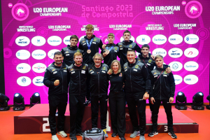 Santiago de Compostela – Das Gr.-römisch-Team hat bei der U20-Europameisterschaft in Santiago de Compostela mit zwei Bronzemedaillen durch Lukas Benzing (55kg) und Darius Kiefer (97kg) und einem fünften Platz von Aaron Bellscheidt (72kg) eine sehr gute Gesamtleistung hingelegt. Die Mannschaft von Nachwuchsbundestrainer Maik Bullmann kam im Team-Ranking mit 44 Punkten auf den neunten Platz.