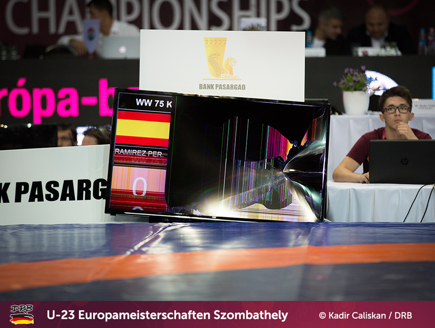 Im vorletzten Kampf des Tages durfte dann Francy Rädelt in ihrem Finale auf die Matte. Ramirez hatte in ihrem Viertelfinale einen starken Eindruck hinterlassen, unterlag am Ende trotz zwischenzeitlich deutlicher Führung. Francy war somit gewarnt und ging hochkonzentriert zu Werke. Auch der einzige Schreckmoment des Kampfes, in Form eines zerstörten Flachbildfernsehers, konnte sie nicht aufhalten. Mit einem ihrer starken Doppelbeinangriffen beförderte sie die Spanierin in den als Anzeige fungierenden LED-TV und zerstörte ihn vollends. Beide Athletinnen trugen glücklicherweise keine Blessuren davon und kurz nach der Pause beendete dann ein letzter Beinangriff das Duell. Rädelt siegte vorzeitig mit 10:0 und holte somit direkt die zweite Bronzemedaille des Tages.